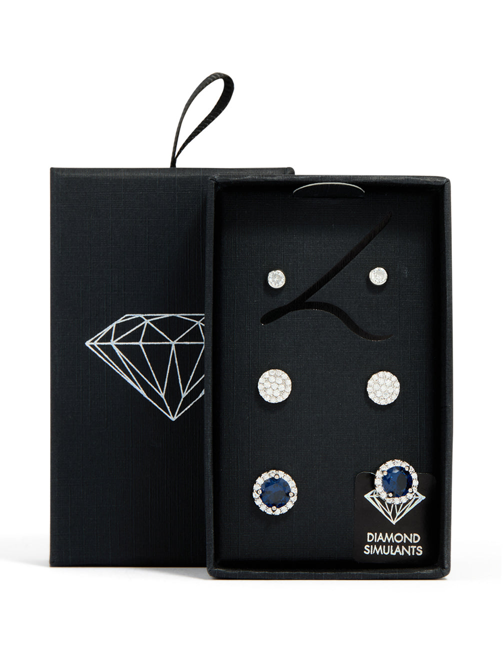 Silver Blue & Clear Cubic Zirconia Earrings 3-Pack