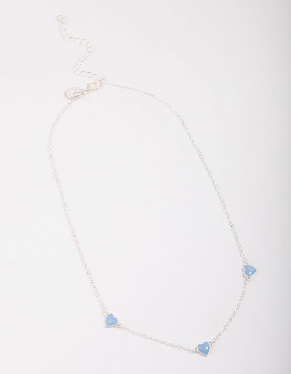This chain necklace features a collection of blue coloured hearts, perfect for adding a pop of colour to your look.