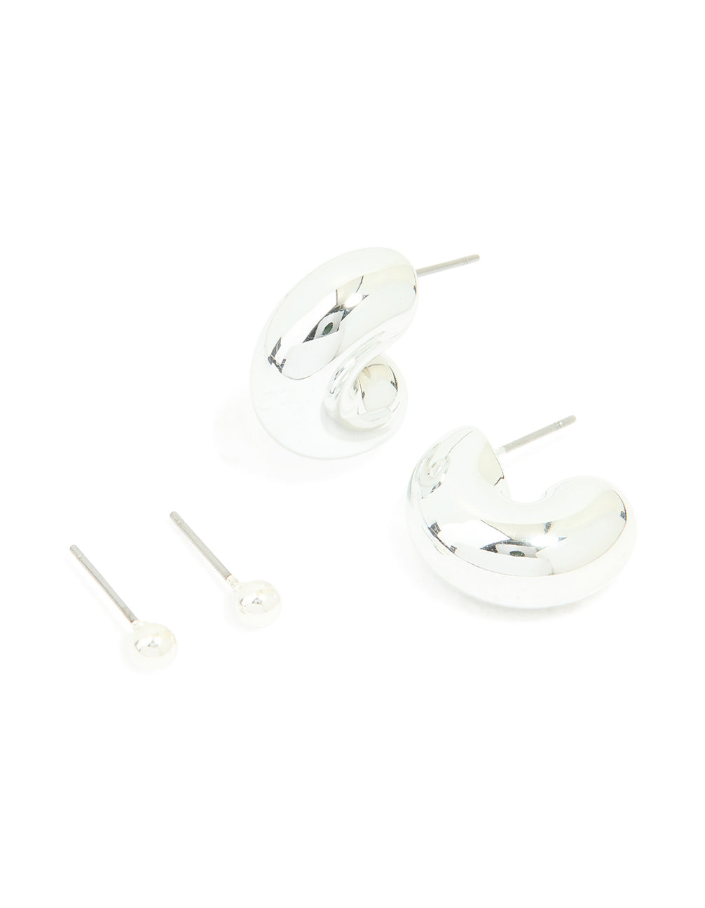 Silver Bubble Ball Hoop & Stud Earrings 2-Pack
