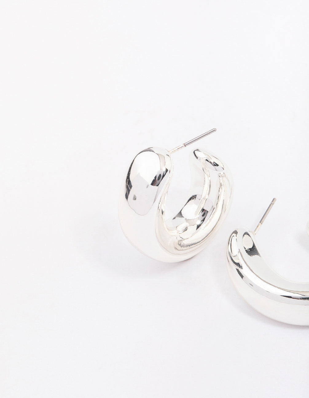 Add a modern addition to your look with these sleek, silver-toned hoop earrings. These classic hoops feature a chunky, wide silhouette and shiny finish. Perfect for adding detail and impact to your outfit.