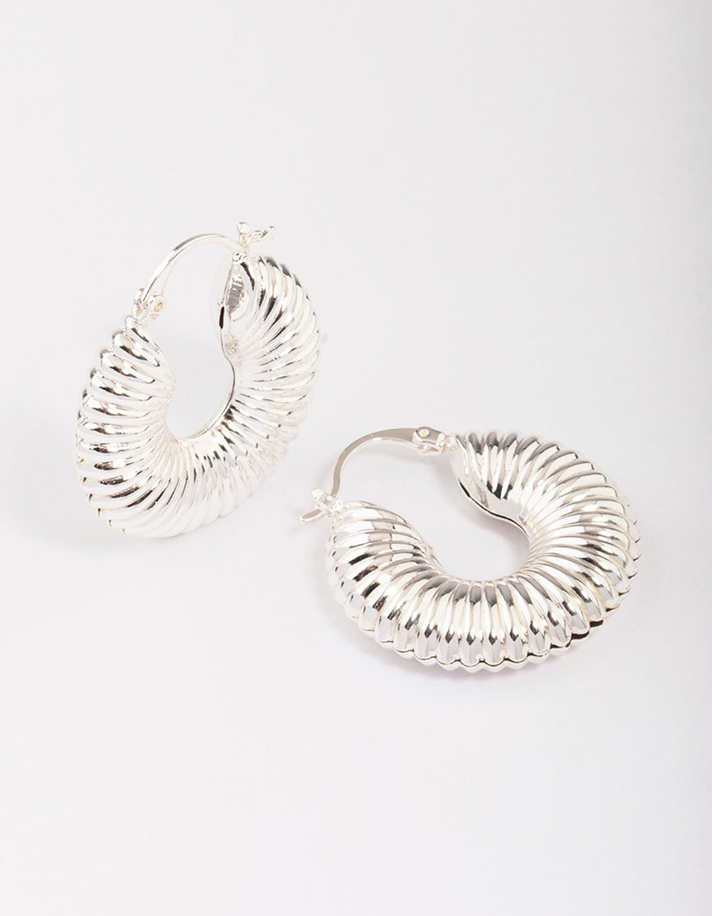 Add a modern addition to your stack with these signature, silver-toned hoops. These hoop earrings are designed with a ribbed, textured finish for added interest.