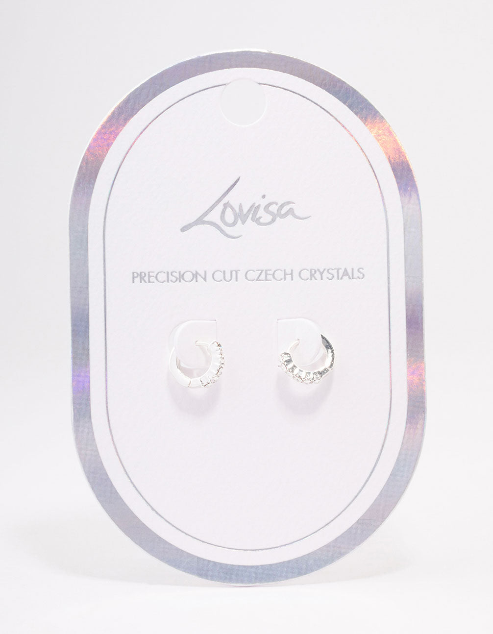Silver Crystal Huggie Hoop Earrings Silver Crystal Huggie Hoop Earrings Silver Crystal Huggie Hoop Earrings
