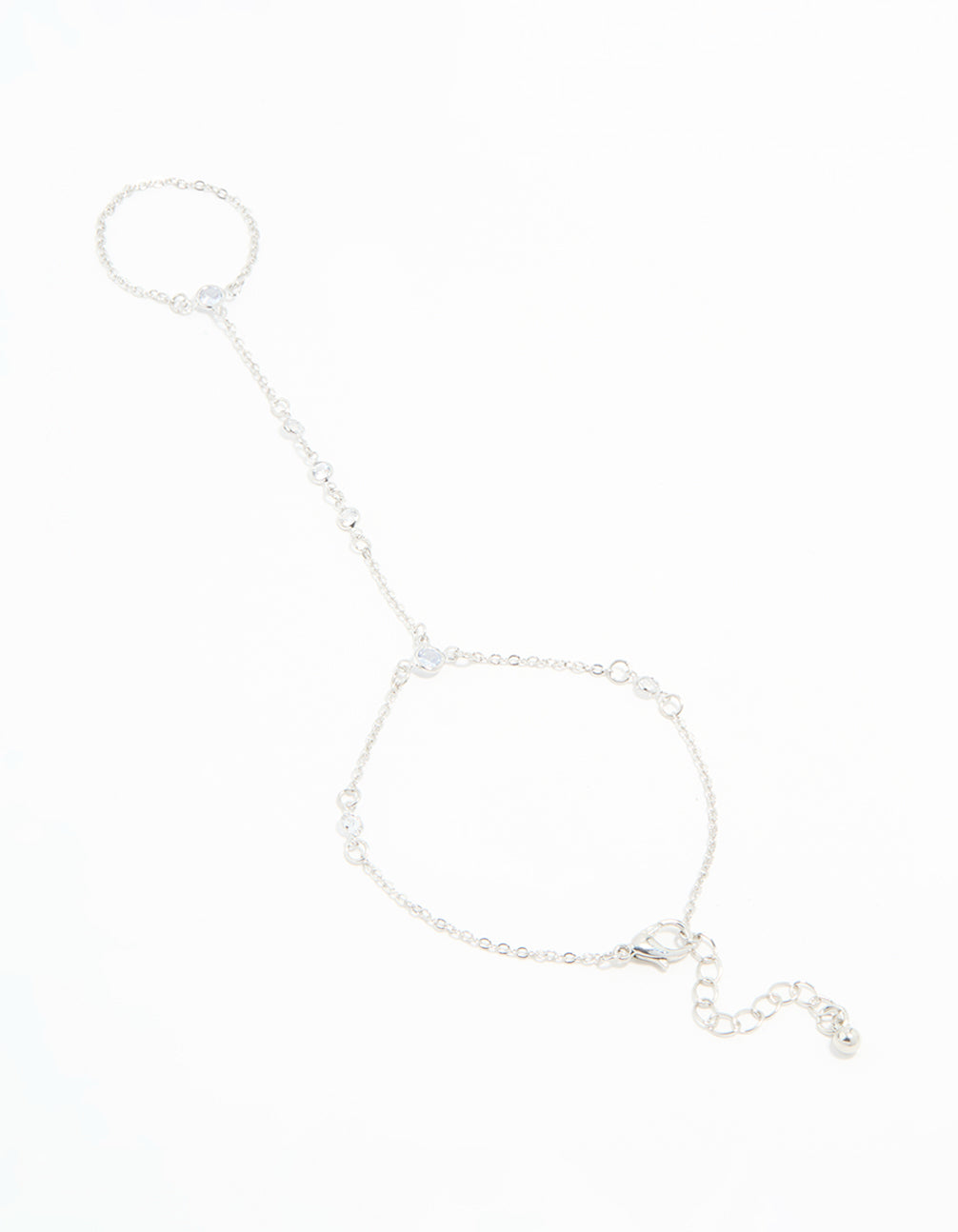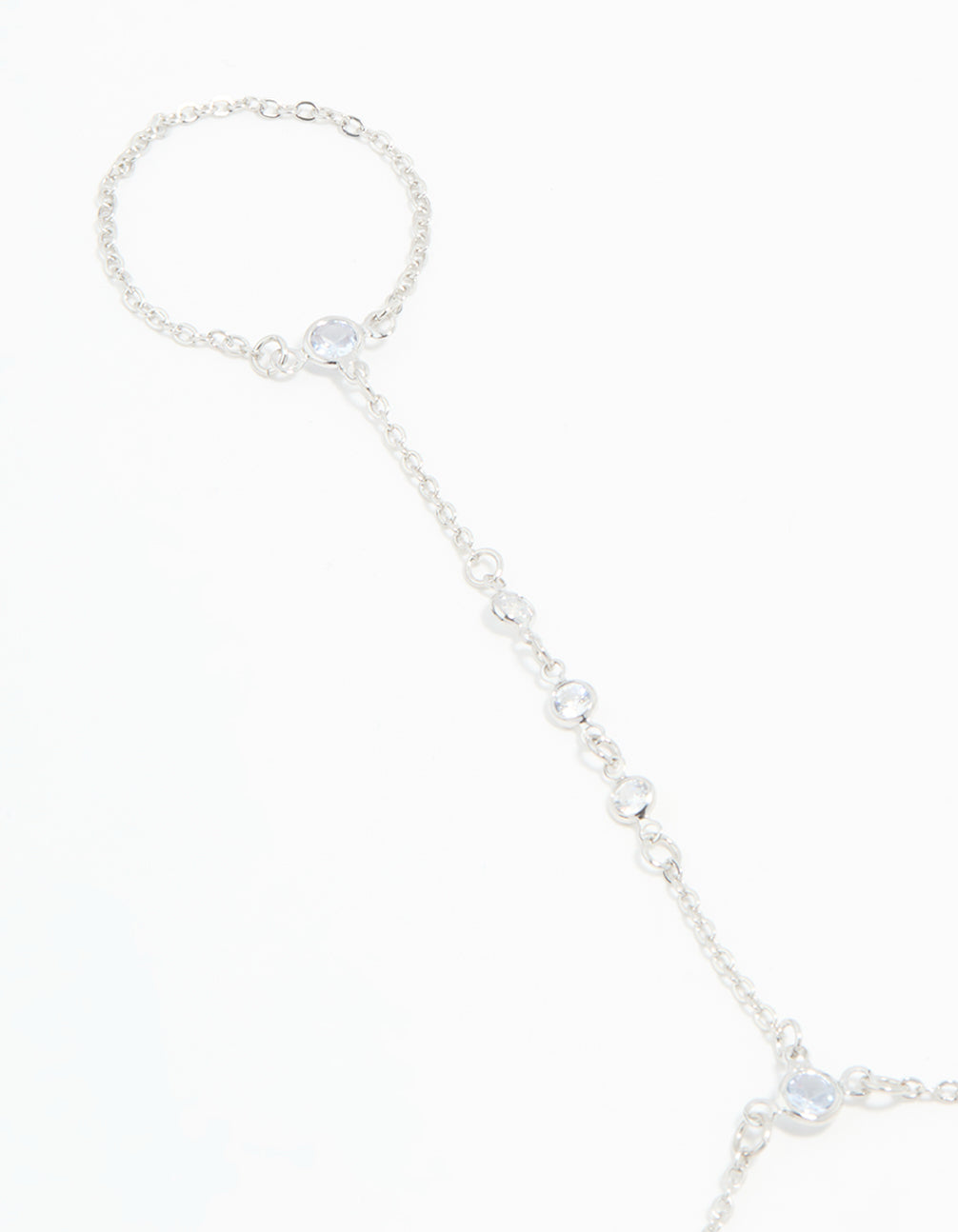 Add a touch of elegance to your jewellery collection with this Silver Cubic Zirconia Bezel Hand Chain. This beautiful hand chain features a sleek silver-tone chain adorned with sparkling bezel-set cubic zirconia crystals, offering a modern and refined look. Perfect for layering with rings or bracelets, this hand chain is a versatile piece that works for any occasion. Whether you're dressing up for a wedding, a night out, or adding a little sparkle to your everyday style, it pairs effortlessly with everything from flowing dresses to tailored outfits. Delicate yet eye-catching, it's the ultimate statement piece for anyone who loves contemporary hand jewellery with a hint of glamour.
