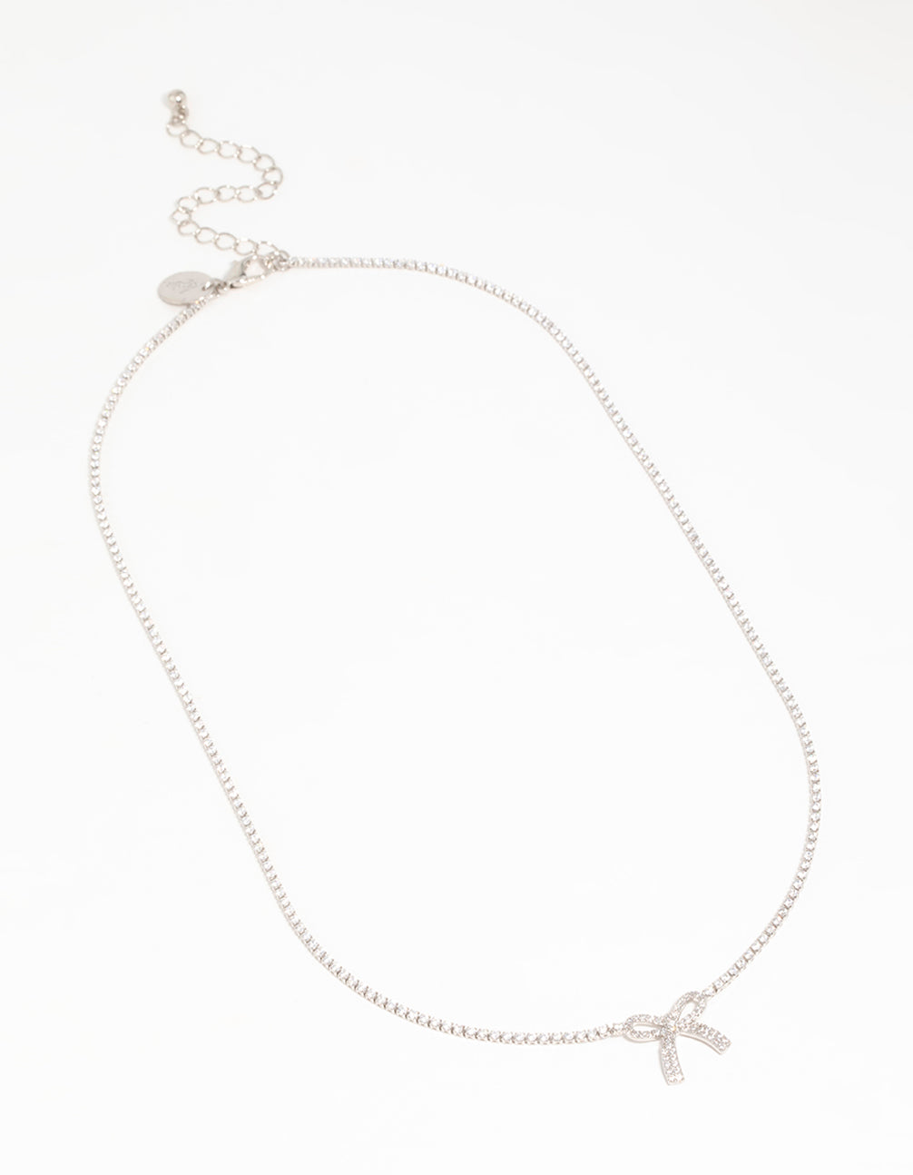 Silver Cubic Zirconia Bow Pendant Necklace
