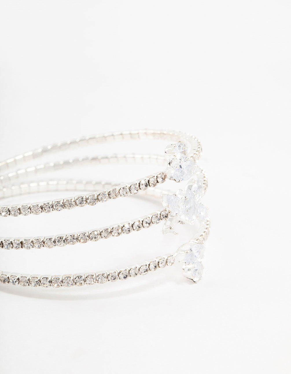 Silver Cubic Zirconia Butterfly Layered Wrist Cuff