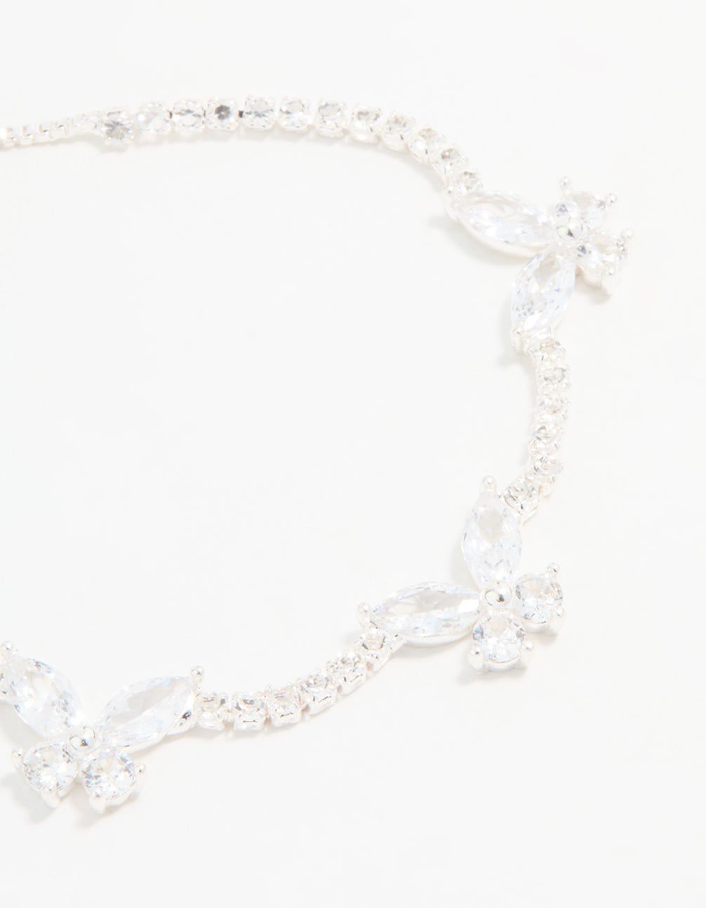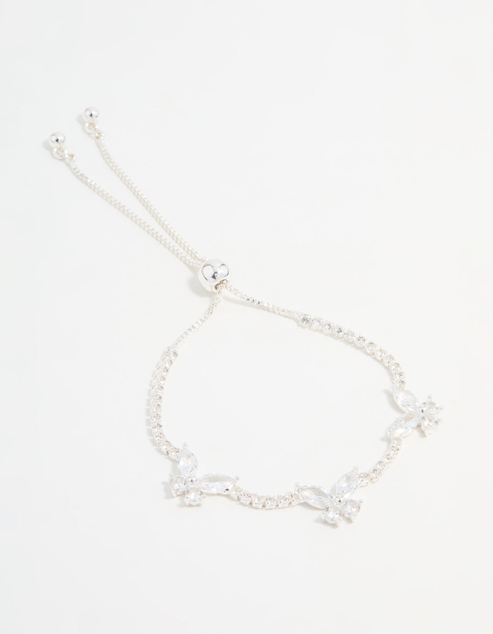 Add magic to your look with this Silver Cubic Zirconia Butterfly Toggle Bracelet! This stunning bracelet features a delicate silver chain adorned with sparkling butterfly shaped cubic zirconia gems and a toggle clasp.