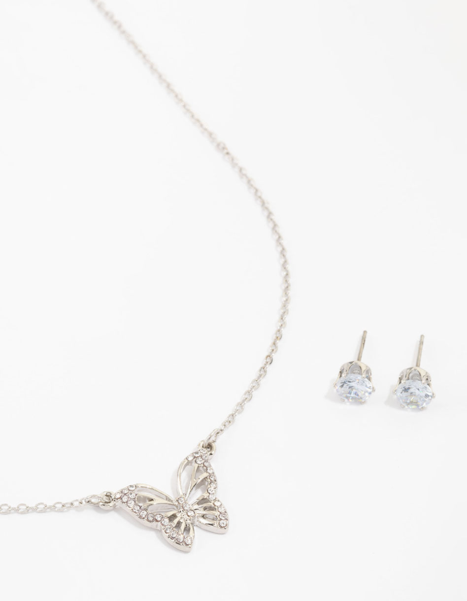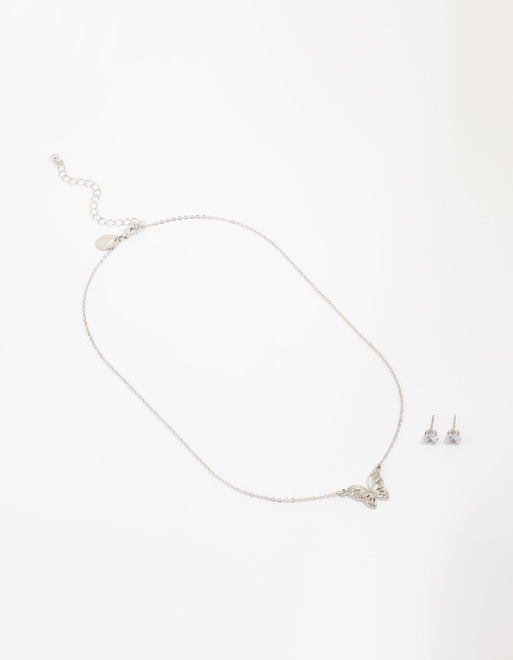 Silver Cubic Zirconia Butterfly Necklace & Stud Earrings Necklace & Stud Earrings Set Silver Cubic Zirconia Butterfly Necklace & Stud Earrings Necklace & Stud Earrings Set Silver Cubic Zirconia Butterfly Necklace & Stud Earrings Necklace & Stud Earrings Set