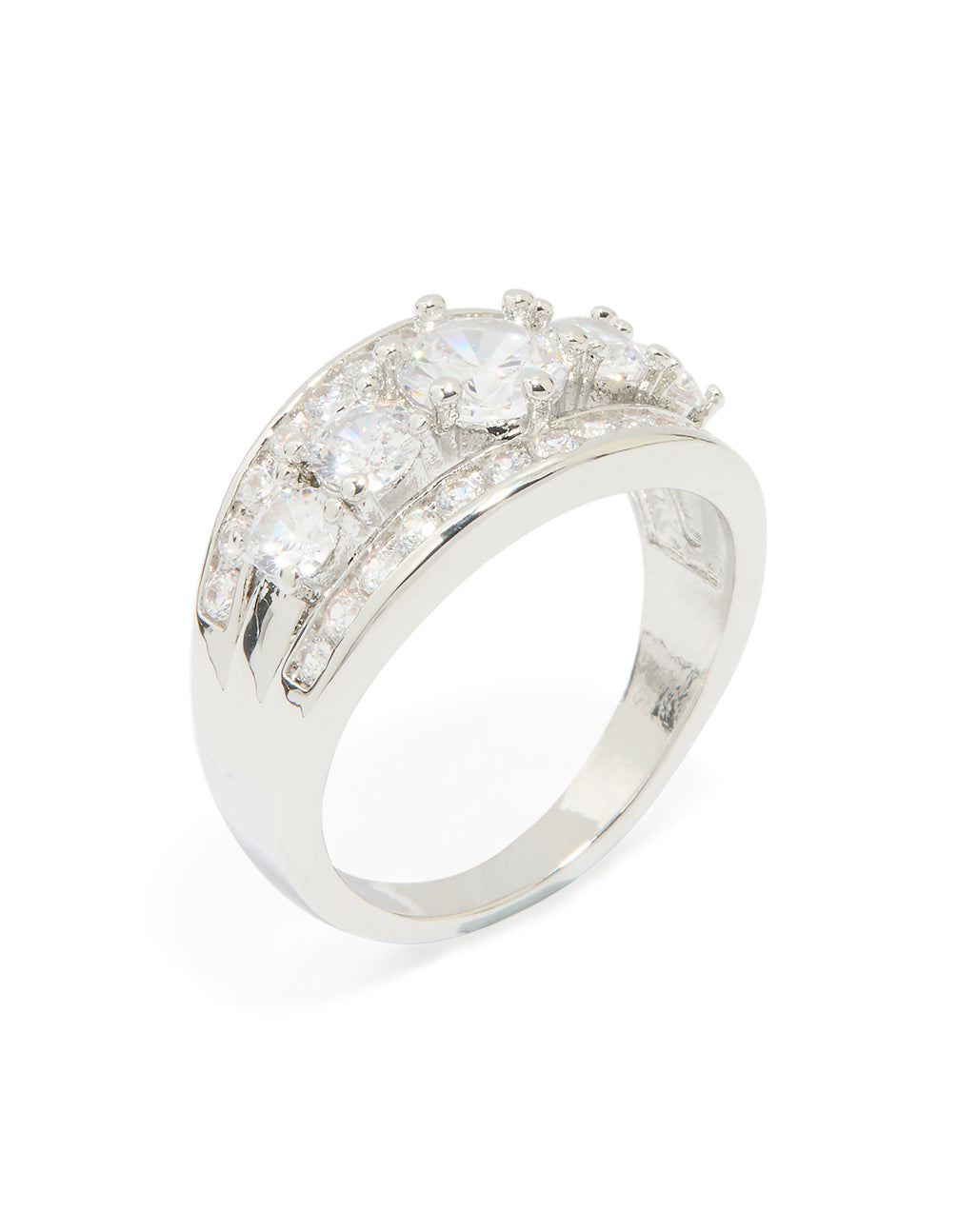 Elevate your jewellery game with this Silver Cubic Zirconia Cluster Band Ring. This dazzling cocktail ring is crafted from sleek silver and features a stunning cluster design of sparkling cubic zirconia crystals, making it perfect for those who love a touch of glamour. Whether you're heading to a party, a wedding, or a fancy dinner, this ring adds instant elegance to your look. Its bold yet timeless design makes it easy to pair with anything from a little black dress to smart-casual outfits. Wear it solo to let it shine or stack it with other silver rings for a trendy layered vibe. A must-have for anyone who adores chic and affordable luxury, this ring is as versatile as it is eye-catching. Perfect as a treat for yourself or a thoughtful gift, it's the kind of jewellery that never goes out of style!