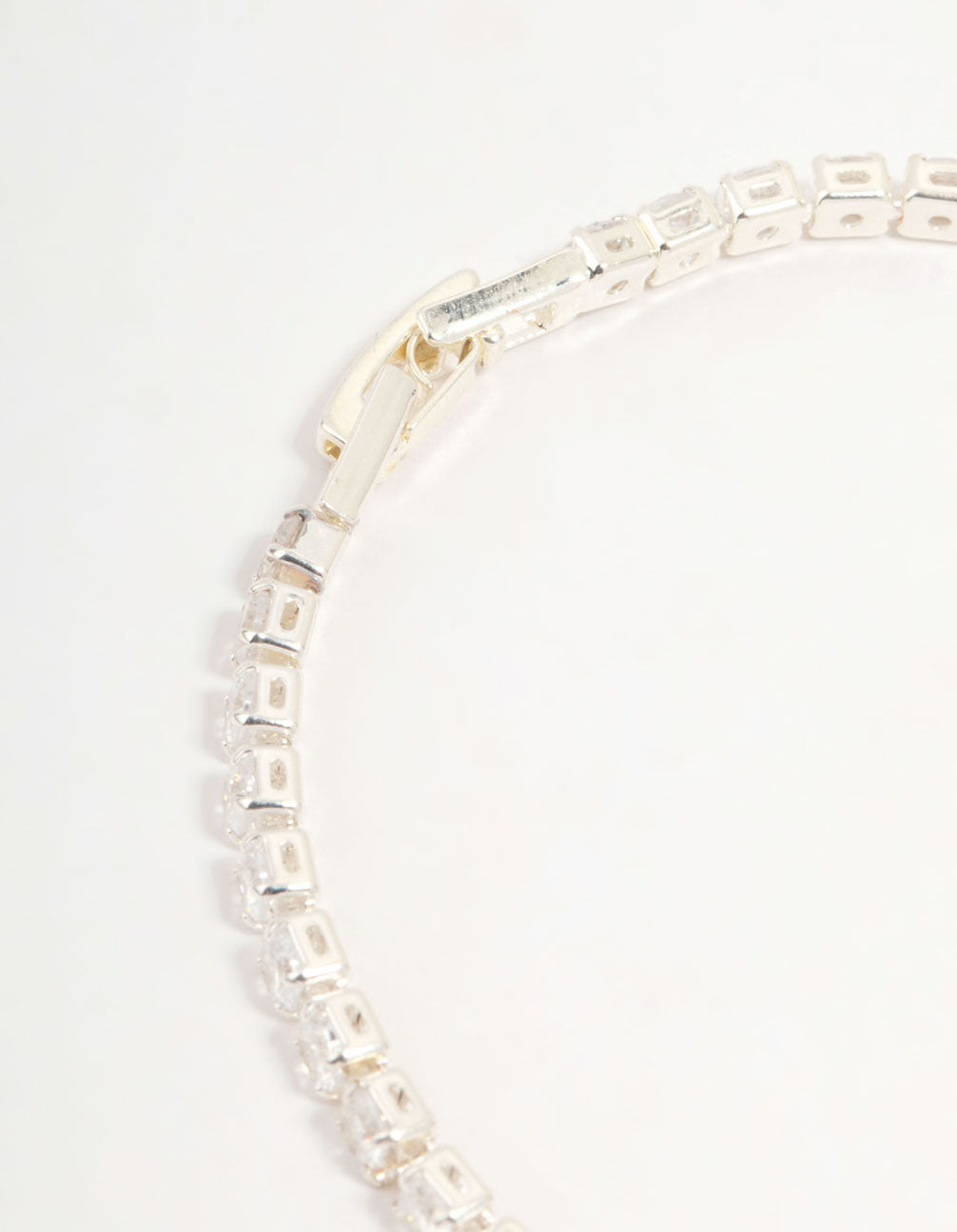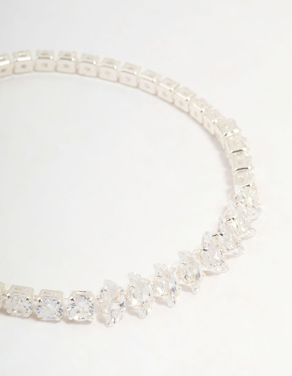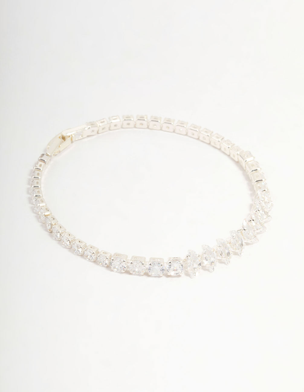 Silver Cubic Zirconia Crescent Tennis Bracelet