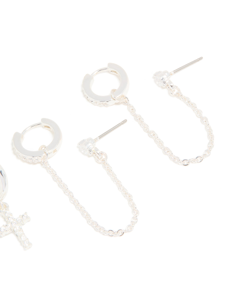 Silver Cubic Zirconia Cross & Chain Earrings 2-Pack