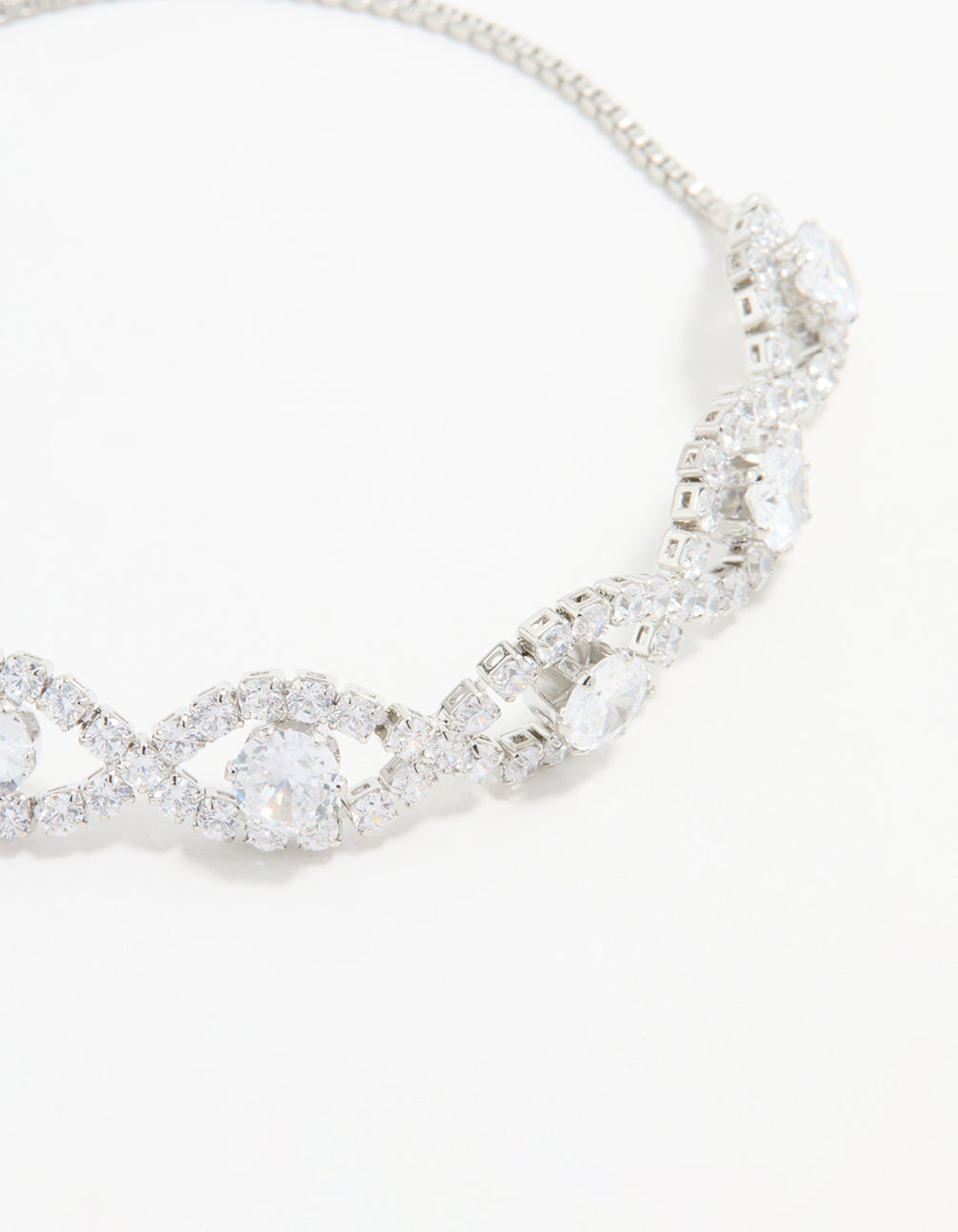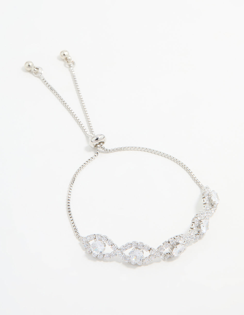 Silver Cubic Zirconia Evil Eye Toggle Bracelet