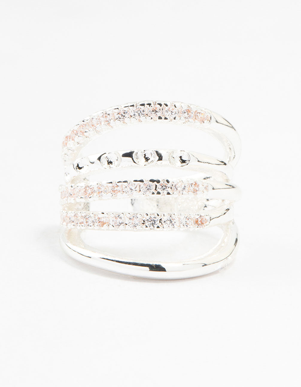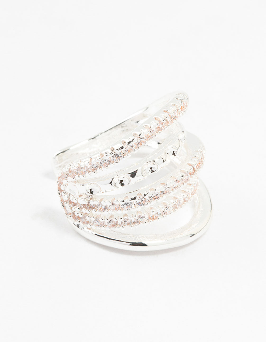 Silver Cubic Zirconia Five Row Hoop Ear Cuff