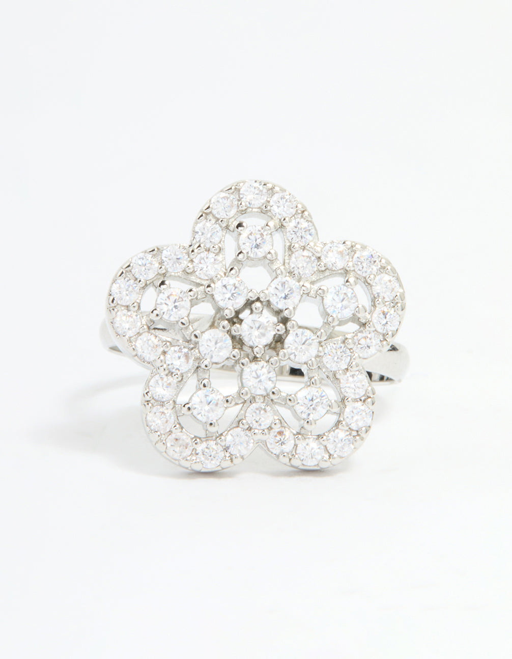 Silver Cubic Zirconia Statement Flower Ring Silver Cubic Zirconia Statement Flower Ring Silver Cubic Zirconia Statement Flower Ring