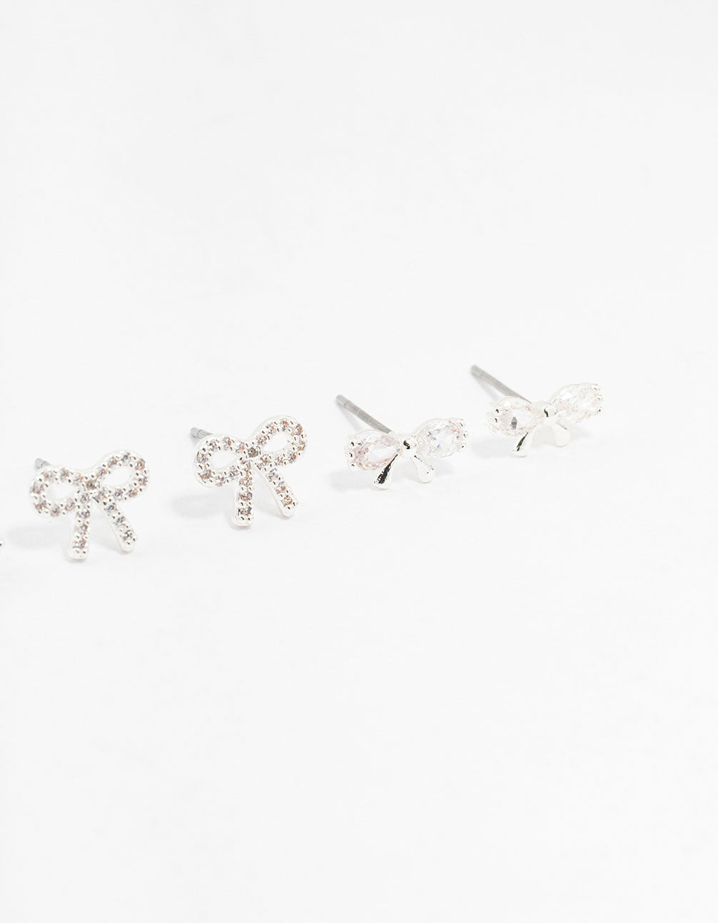 Silver Cubic Zirconia Sweet Bow Stud Earrings 3-Pack
