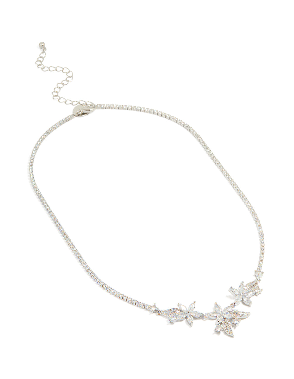 Silver Cubic Zirconia Triple Floral Cluster Necklace
