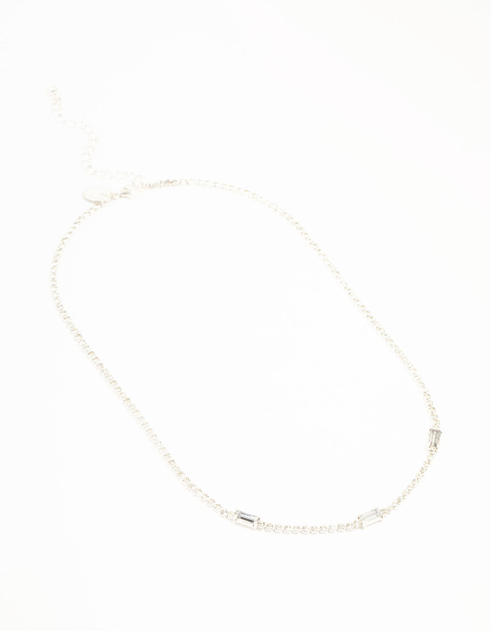 Silver Cupchain Baguette Cut Diamante Station Necklace Silver Cupchain Baguette Cut Diamante Station Necklace