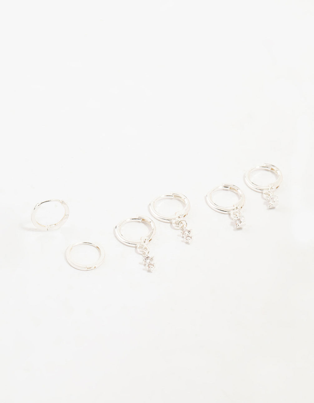 Silver Dainty Round Cubic Zirconia Hoop Earrings 3-Pack