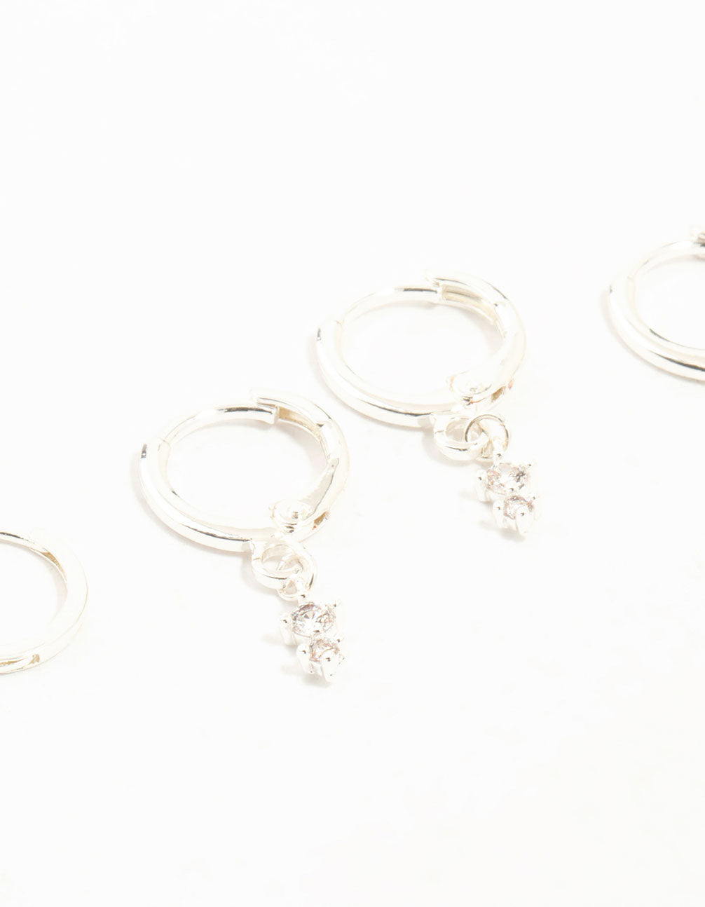 Be spoiled for choice with this fabulous hoop trio. This silver-toned set features sleek hoops, double cubic zirconia drop hoops, and a single cubic zirconia drop pair. Perfect for any occasion.
