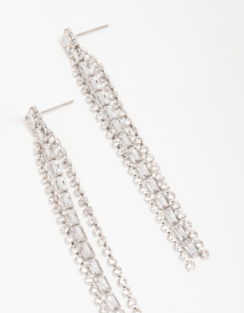 Add some sparkle to your style with these Silver Diamante Baguette Cupchain Drop Earrings. These stunning drop earrings combine sleek silver tones with dazzling diamante baguette cut detailing for a look that's effortlessly chic. Perfect for parties, weddings, or a night out, these earrings are a must-have for anyone who loves elegant yet playful jewellery. The baguette-shaped gemstones catch the light beautifully, making them ideal for adding a touch of glamour to any outfit. Pair them with a little black dress for timeless sophistication or dress up your favourite jeans and blazer combo for a stylish, modern vibe. Whether you're after statement earrings, silver jewellery, or shimmering diamante designs, these versatile earrings are perfect for any occasion.