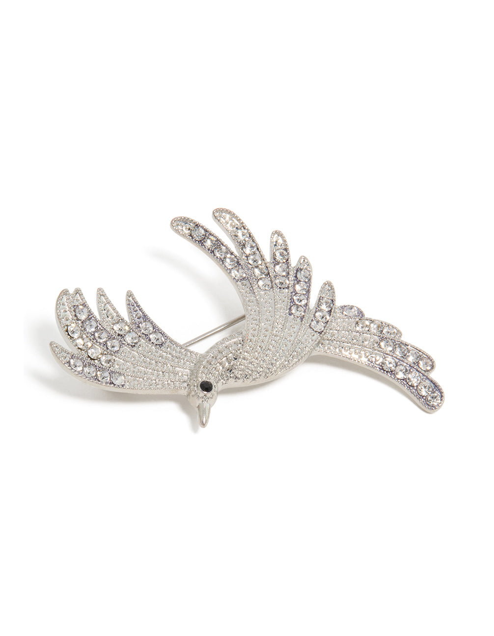 Add a little sparkle to your look with this Silver Diamante Bird Brooch. Crafted in sleek silver-toned metal, this brooch features a delicate bird design adorned with shimmering diamantes for a touch of glamour. Whether you're pinning it to a blazer, a scarf, or even the lapel of your favourite coat, this bird-shaped brooch adds personality and charm to any outfit. Ideal for parties, weddings, or adding flair to your everyday style, it's a versatile accessory that makes a statement without overpowering. Perfect for those who love unique brooches, animal-inspired jewellery, or just a hint of sparkle in their wardrobe!