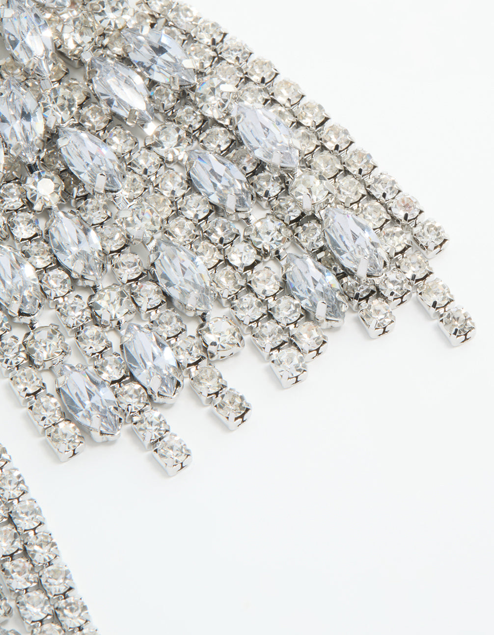 Elevate your event look with these stunning Silver Diamante Chain Drop Earrings. Featuring cascading silver chains adorned with sparkling diamante accents, these elegant earrings bring effortless sophistication to any outfit. Perfect for Met Gala-inspired moments, weddings, or black-tie events, they're the ideal accessory to make a statement. The drop design adds movement and drama, while the silver finish ensures timeless appeal. Pair them with a sleek evening gown or tailored suit for a show-stopping look, or use them to add a touch of luxury to a chic blouse-and-trousers combo. Whether you're heading to a party or dressing up for a formal occasion, these diamante earrings are your go-to for dazzling style! Pieces from our Limited Edition collection are here to make you the center of attention—they're all Met Gala-inspired and ready for your next event. Available for a limited time only.