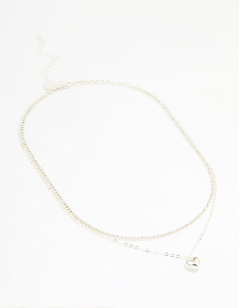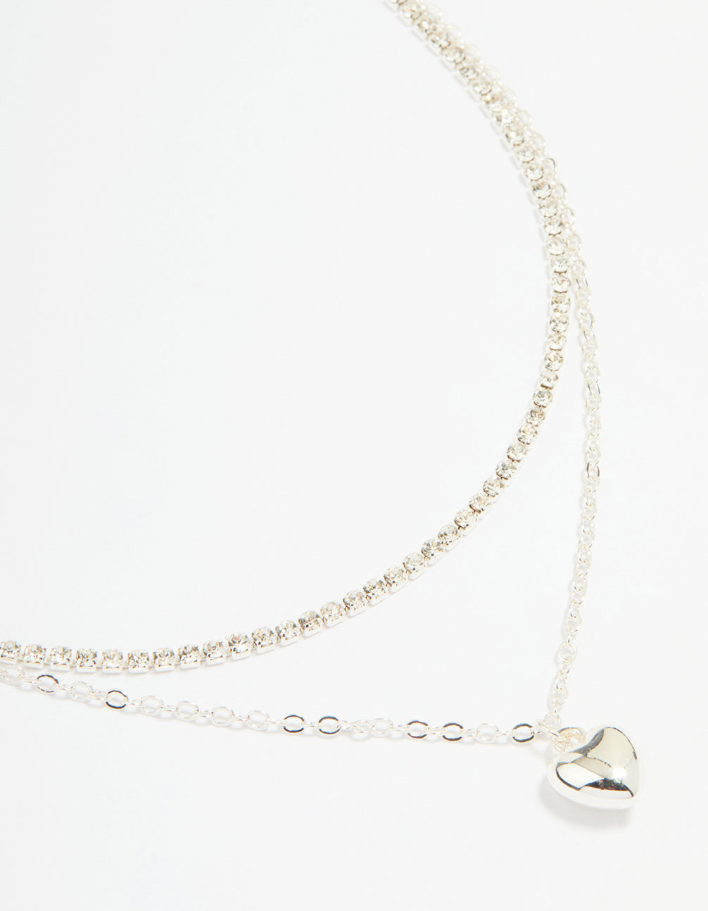 Silver Diamante Cupchain & Puffy Heart Layered Necklace