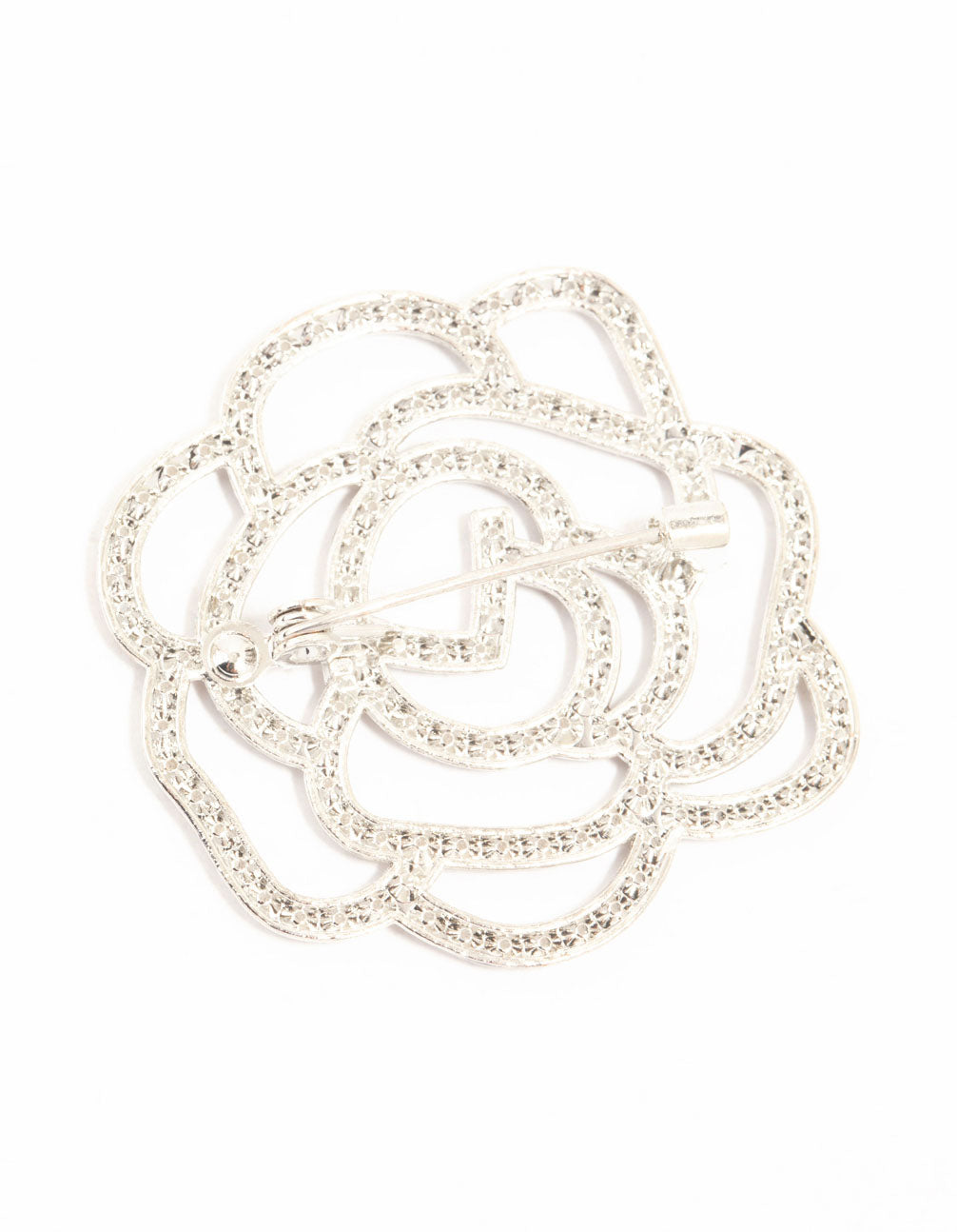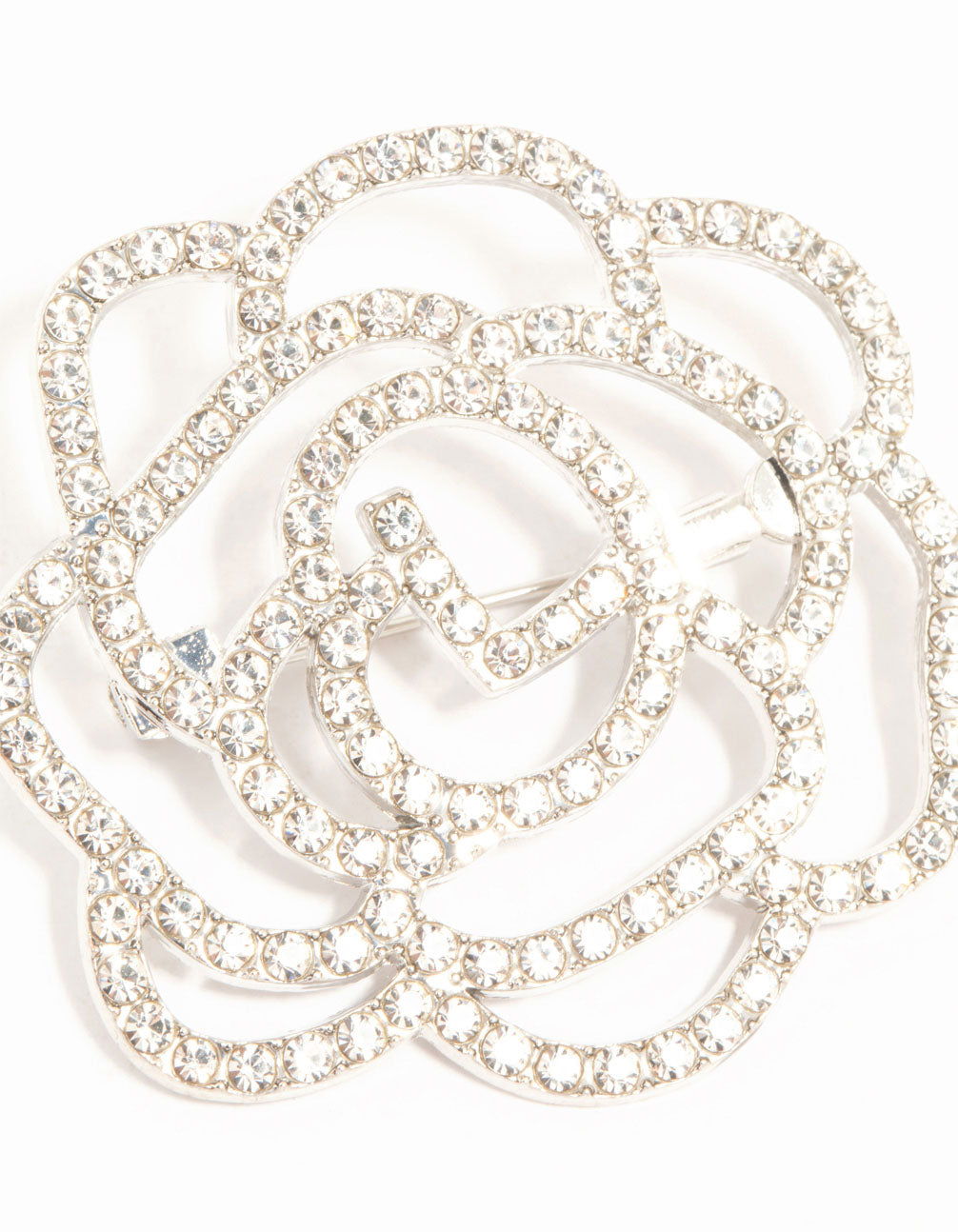 Stun with this silver brooch featuring sparkling crystal cutouts in a whimsical flower design. Pair it with your favorite blouse or blazer for a polished look.