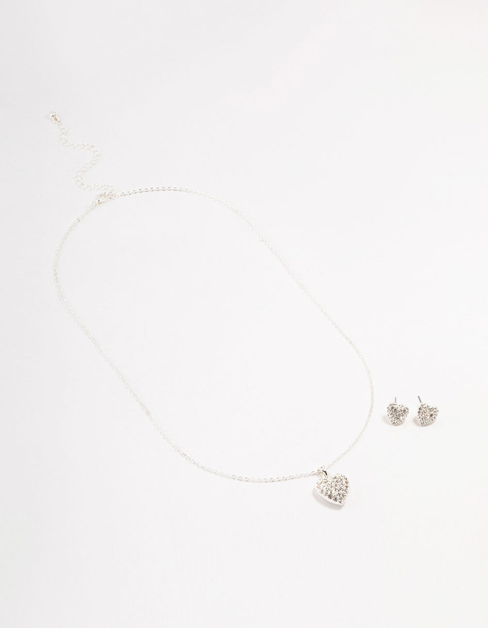 Silver Diamante Heart Necklace & Stud Earrings Set