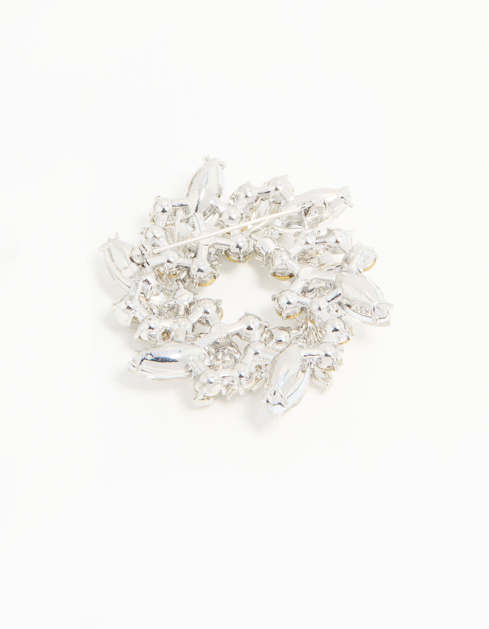 Add a touch of sparkle to your outfit with this Silver Diamante Leaf Round Brooch. Designed in a delicate round shape with a shimmering leaf motif, this brooch is adorned with dazzling diamantes for a subtle yet glamorous finish. Perfect for pinning onto a coat lapel, scarf, or even a clutch bag, it's an easy way to elevate your look for weddings, parties, or formal events. Whether styled with a chic blazer or a flowing dress, this brooch adds a hint of elegance that won't go unnoticed.