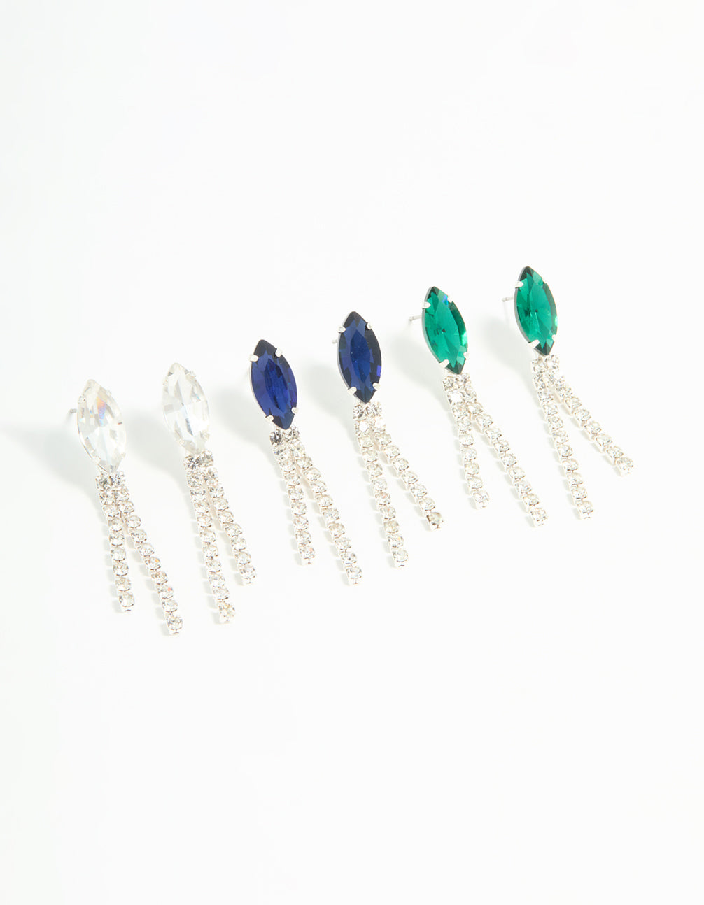 Silver Diamante Marquise Double Cupchain Drop Earrings 3-Pack
