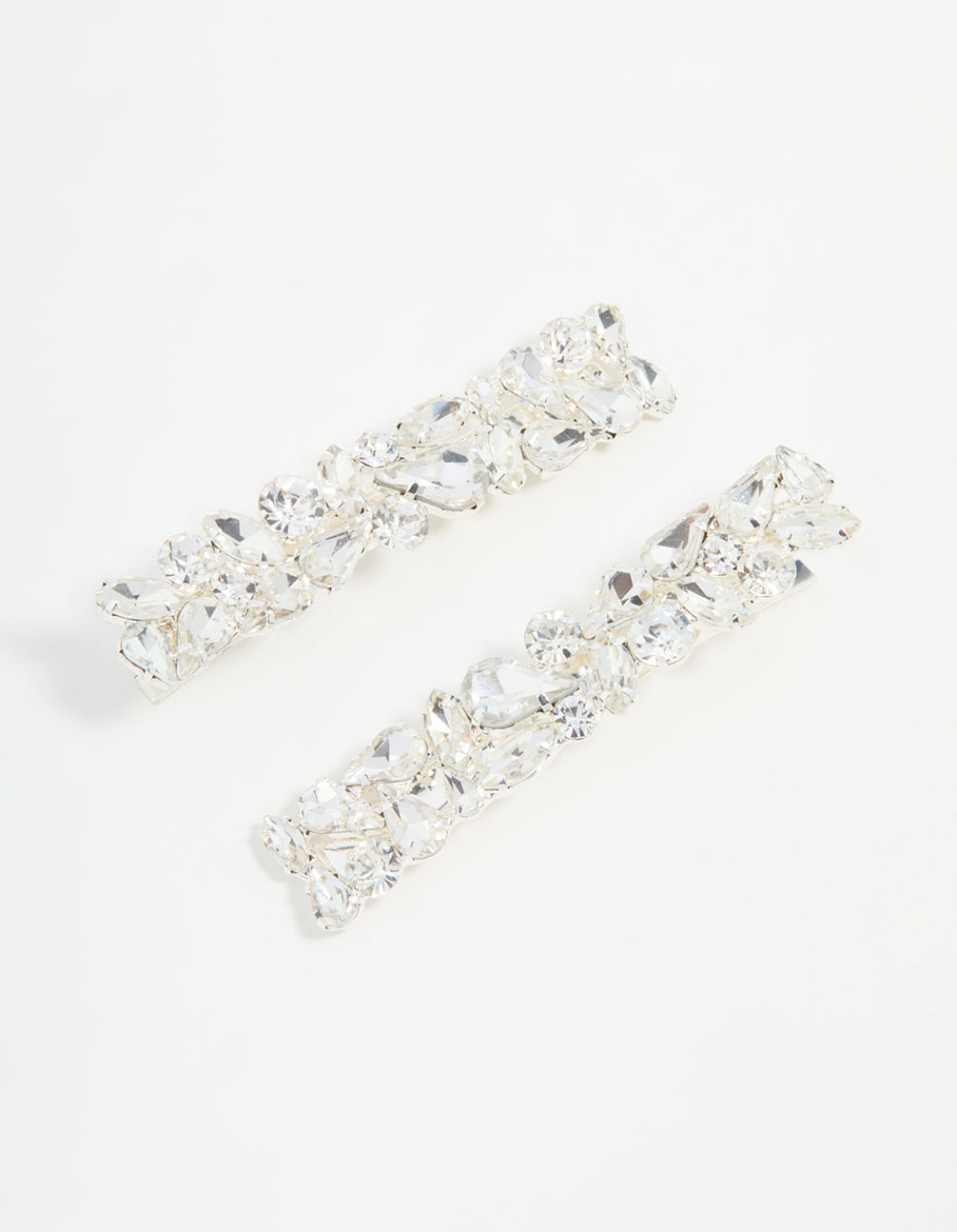 Silver Diamante Mixed Cut Hair Clips 2-Pack
