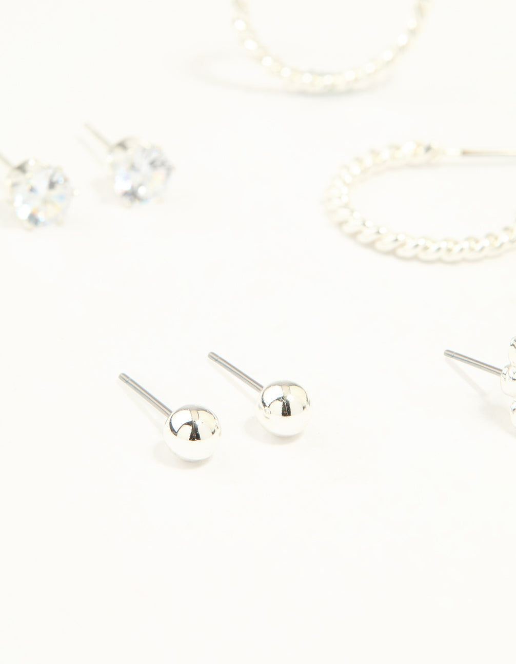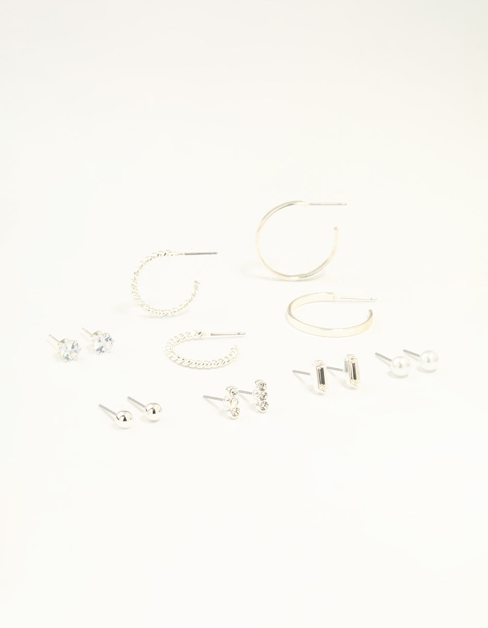 Silver Diamante Mixed Stud & Hoop Earrings 7-Pack