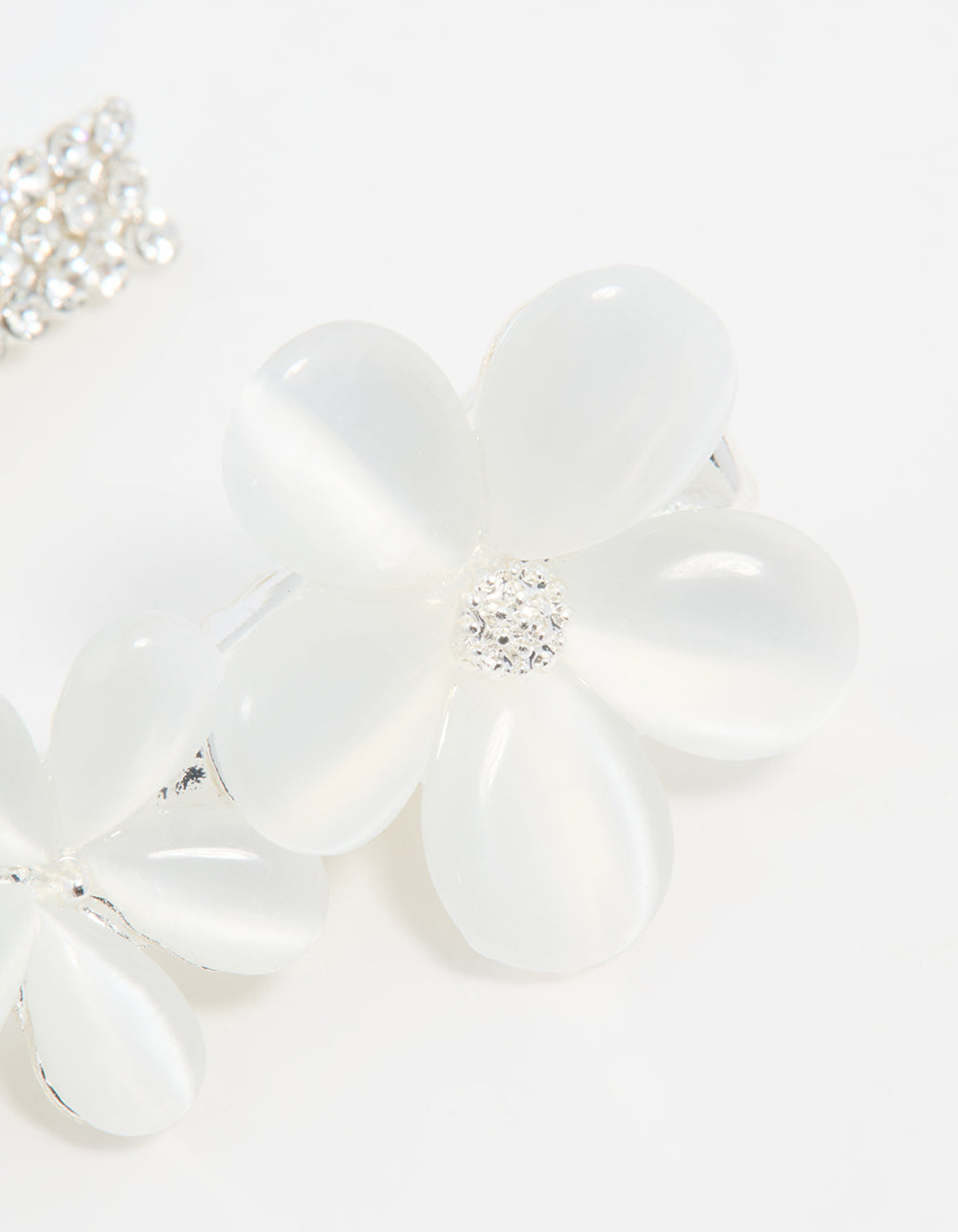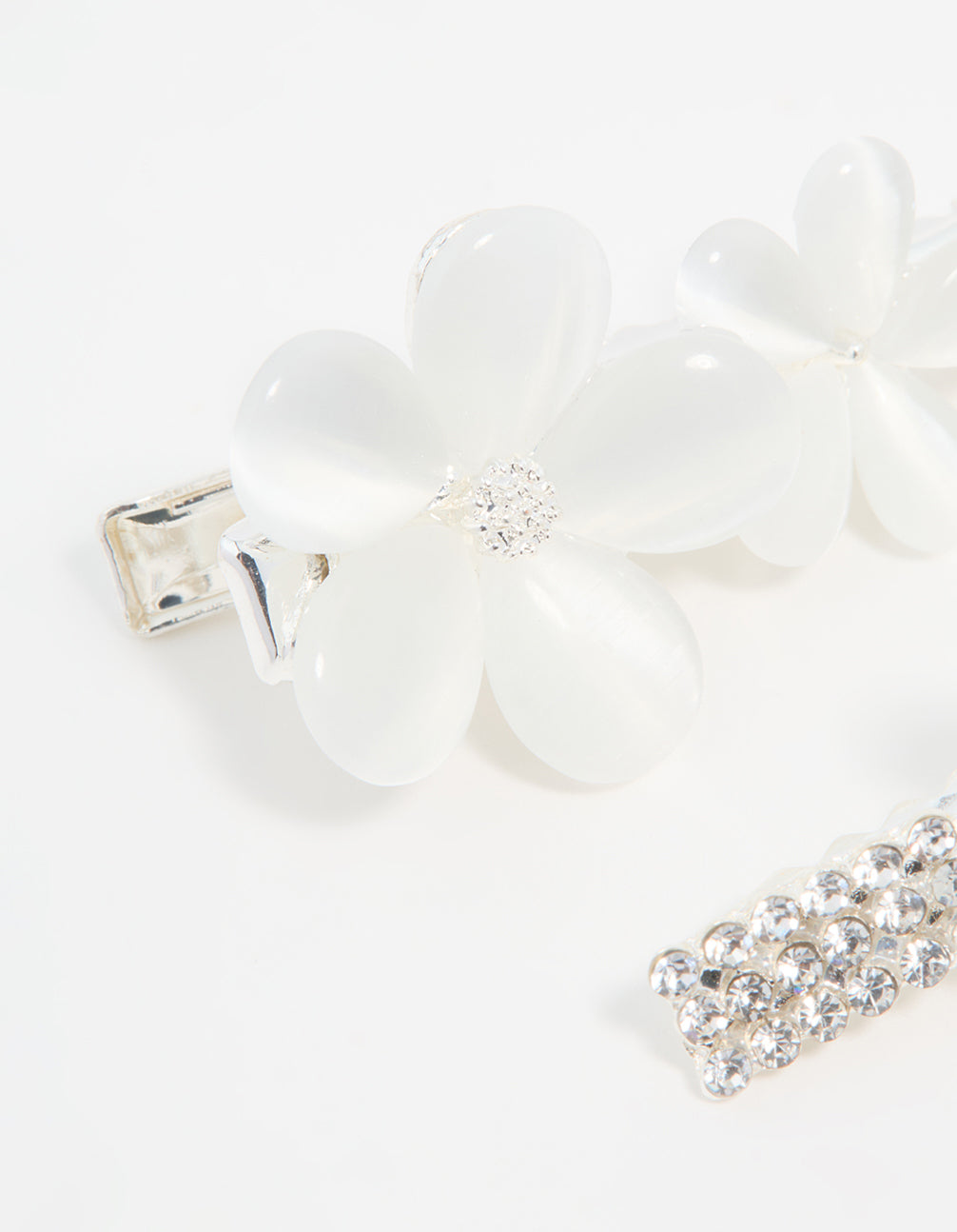 Silver Diamante Pave Double Flower Hair Clips 2-Pack