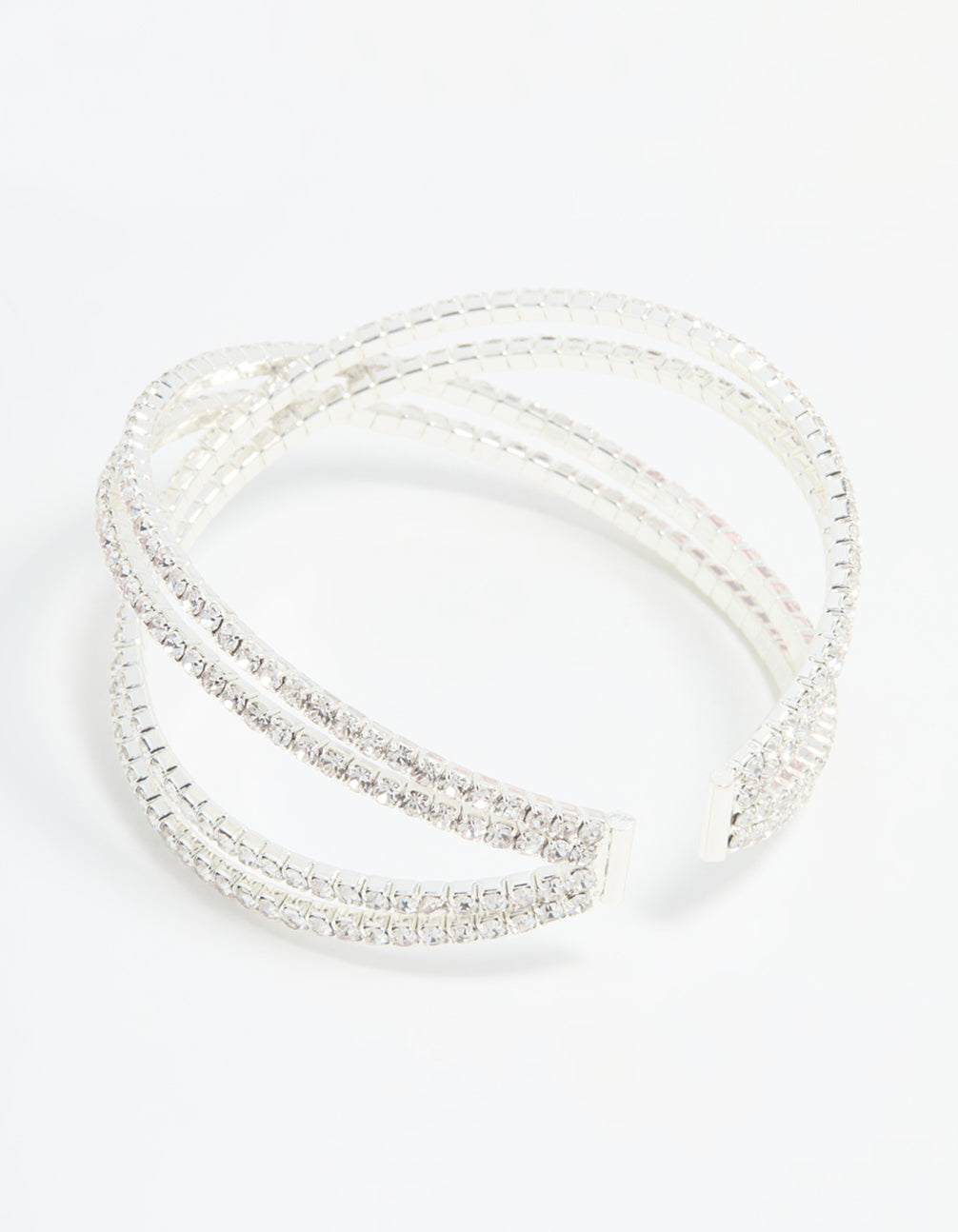 Add a touch of elegance to any outfit with this Silver Diamante Pavé Wrap Bangle. This stunning piece of wristwear features a sleek silver-tone design, with delicate pavé-set diamantes that shimmer beautifully in the light. The wrap-style cuff adds a modern twist, making it perfect for everything from casual brunches to dressy evenings. Pair it with your favourite silver jewellery or let it shine solo as a statement piece. Whether you're dressing up for a party or adding sparkle to your everyday look, this versatile bangle is a must-have accessory for any jewellery lover.