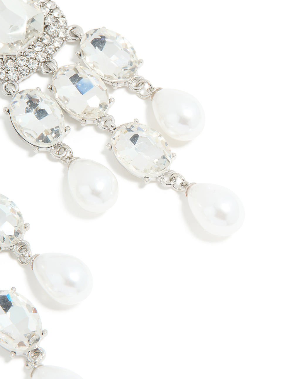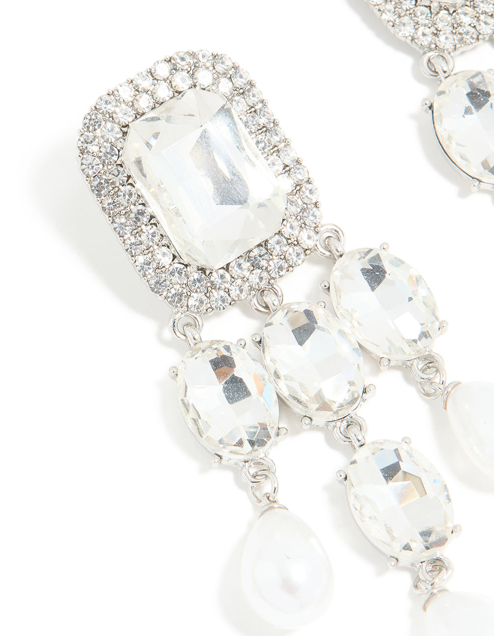 Silver Diamante Pearl Bling Drop Earrings