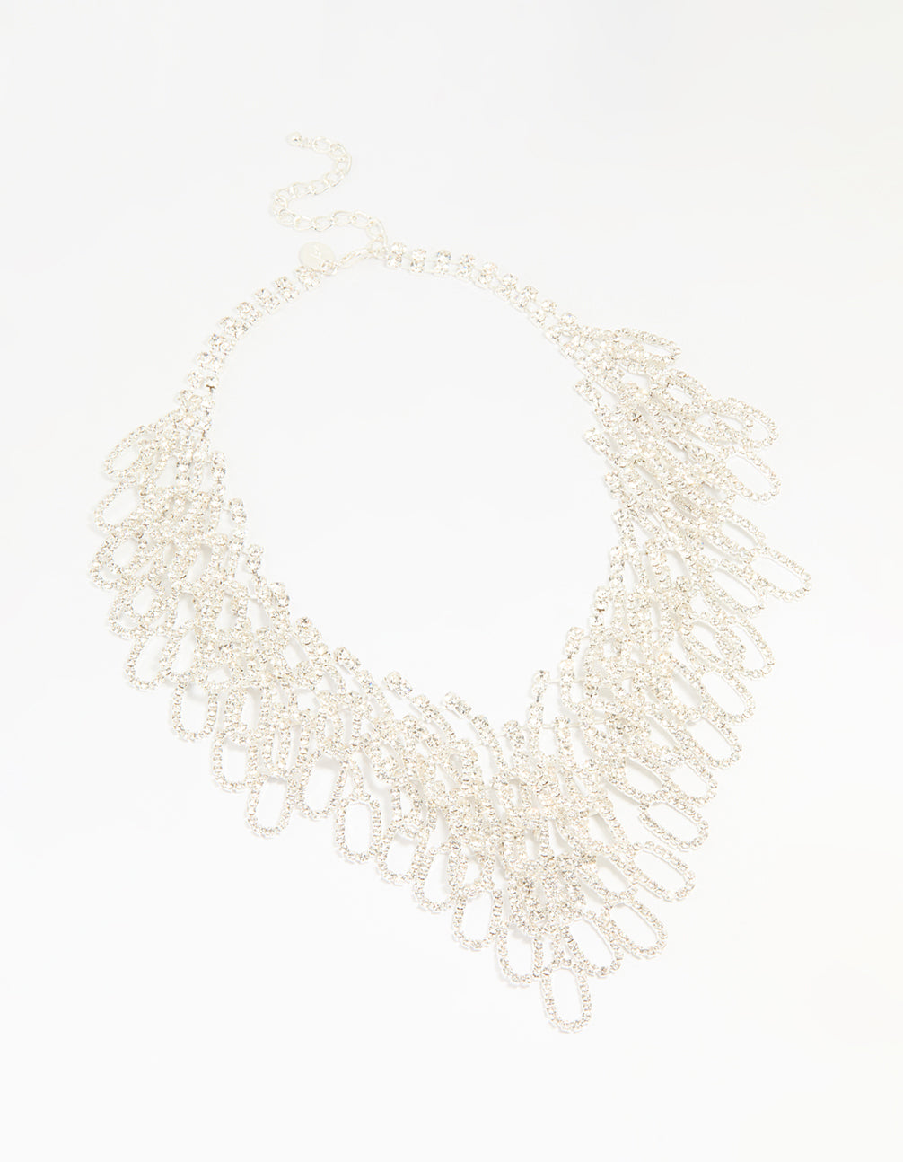 Make a bold entrance with this Silver Diamante Statement V-Necklace. Designed for the lovers of glamour, this silver-tone necklace combines sleek sophistication with sparkling diamante accents in a striking V-shape. Perfect for glamorous events, from weddings to black-tie soirées, this statement necklace effortlessly brings Met Gala-inspired style to your outfit. Pair it with a plunging neckline to highlight its elegant shape, or layer it over a chic blazer for a modern edge. Whether you call it jewellery, a neckpiece, or simply your new go-to accessory, this diamante necklace promises to dazzle and delight every time you wear it! Pieces from our Limited Edition collection are here to make you the center of attention—they're all Met Gala-inspired and ready for your next event. Available for a limited time only.