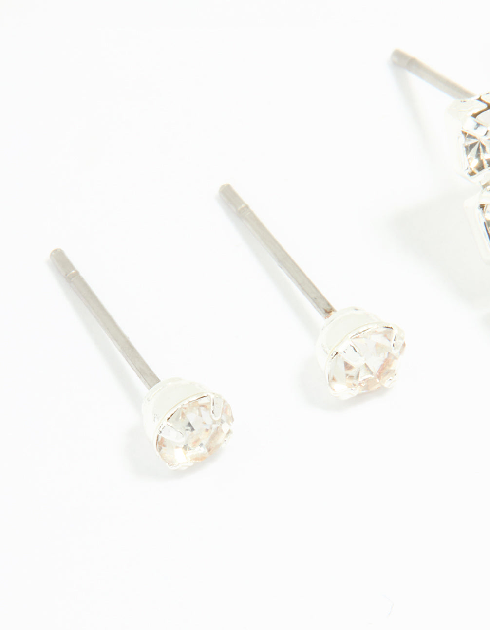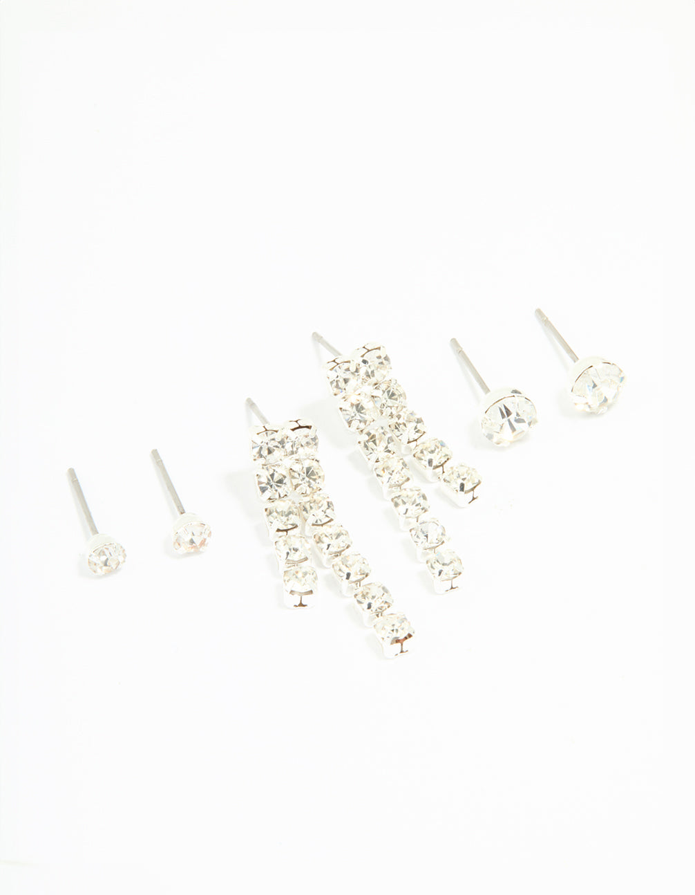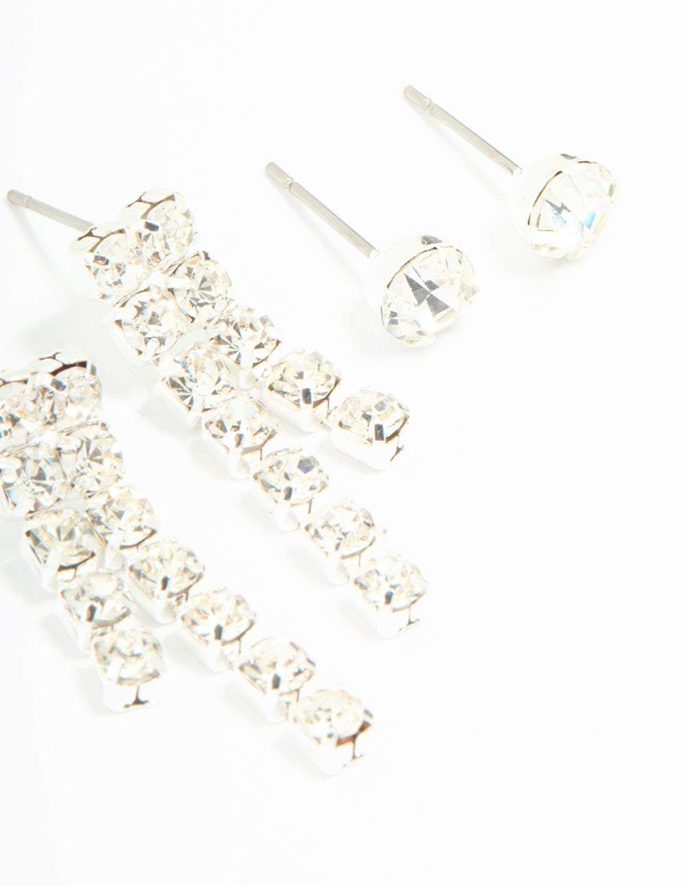 Silver Diamante Stud & Cupchain Earrings 3-Pack
