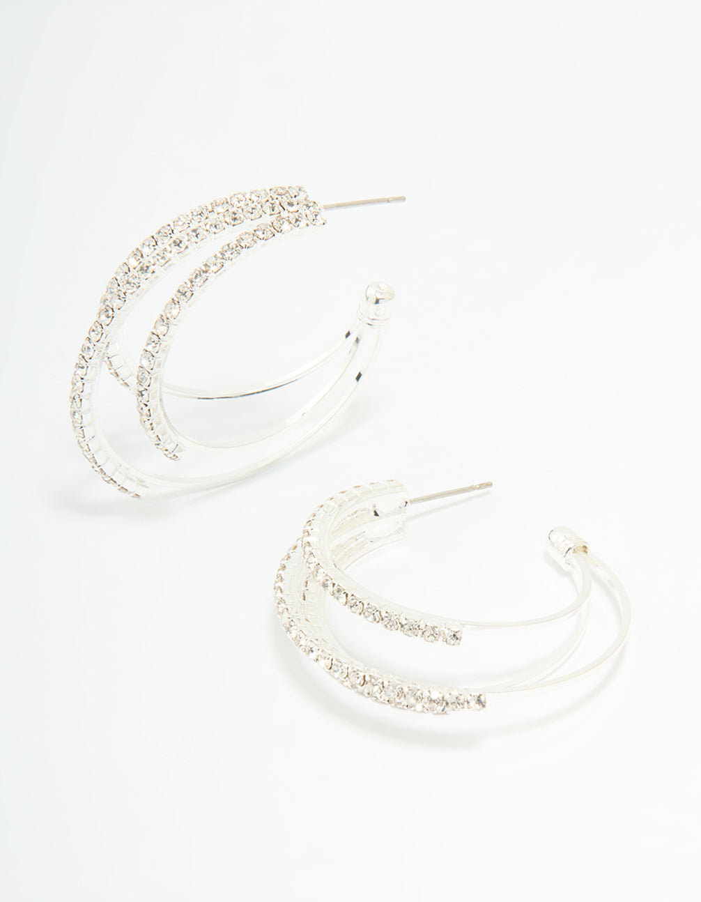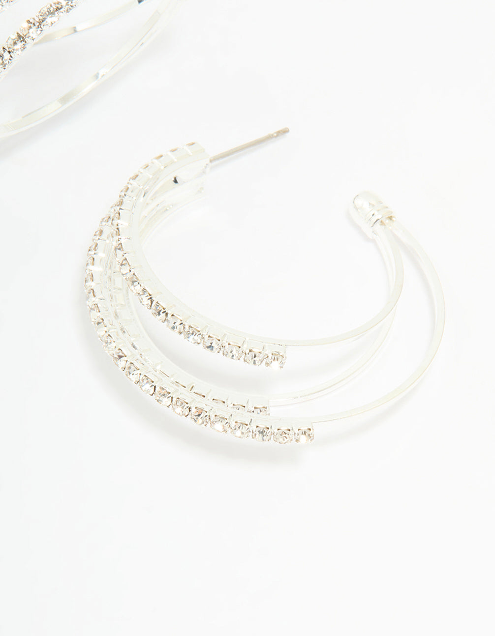 Elevate your accessory game with these Silver Diamante Trio Hoop Earrings! These dazzling hoops feature a trio of silver-tone bands, each adorned with sparkling diamante details for a touch of glamour. Perfect for nights out, weddings, or simply glamming up your day-to-day look, these earrings are a must-have in any jewellery collection. Their versatile style makes them easy to pair with a sleek cocktail dress or even your favourite jeans and a leather jacket. Whether you're after statement earrings, a chic hoop design, or sparkling diamante jewellery, these trio hoops are your go-to for effortless elegance.