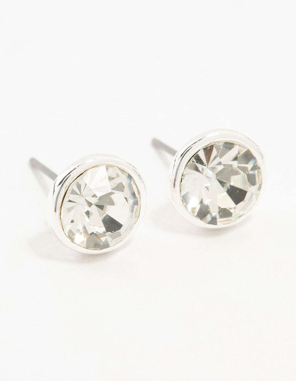 Add classic style with these stunning silver-toned stud earrings! Featuring a sparkly diamante with a frame design, they bring extra sparkle to your look.