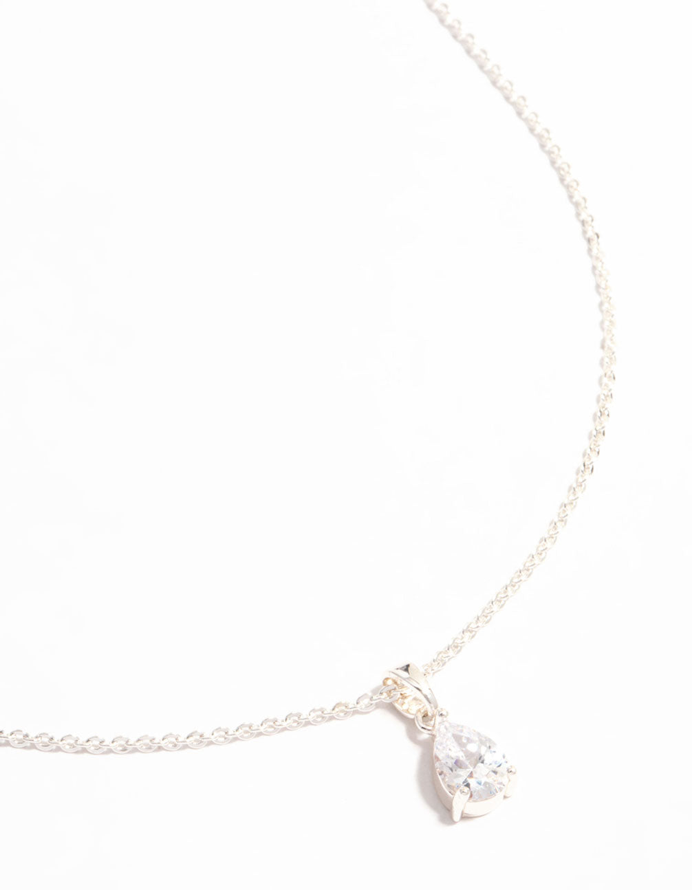 Bring a touch of sparkle with this necklace. This necklace features a silver chain and pear shaped cubic zirconia pendant.