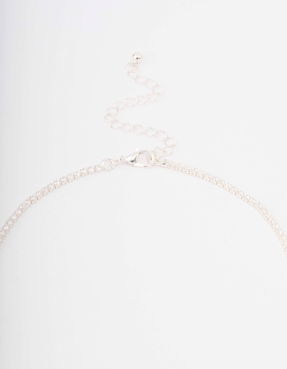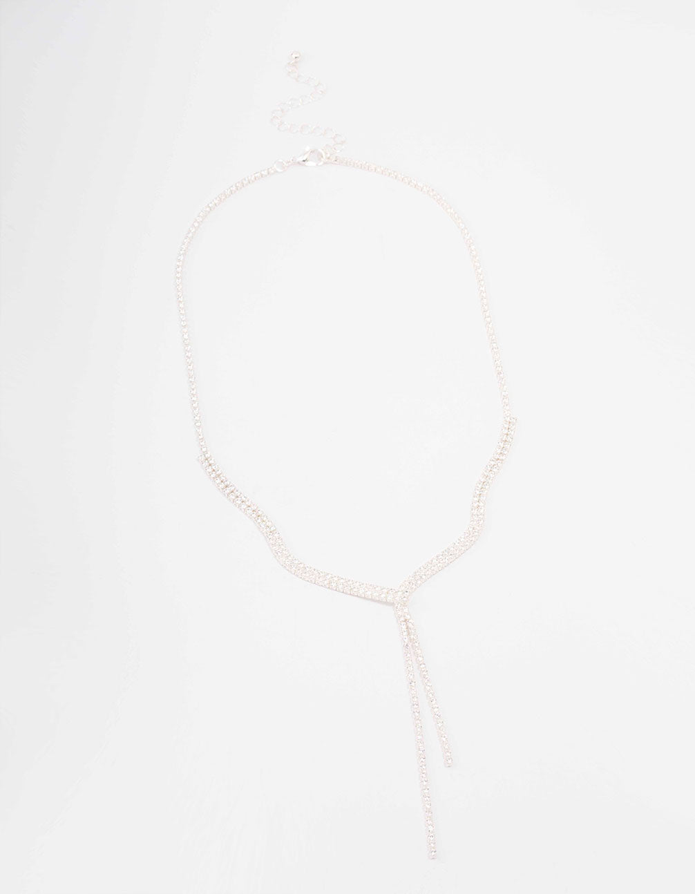 Silver Fine Ribbon Cubic Zirconia Lariat Necklace