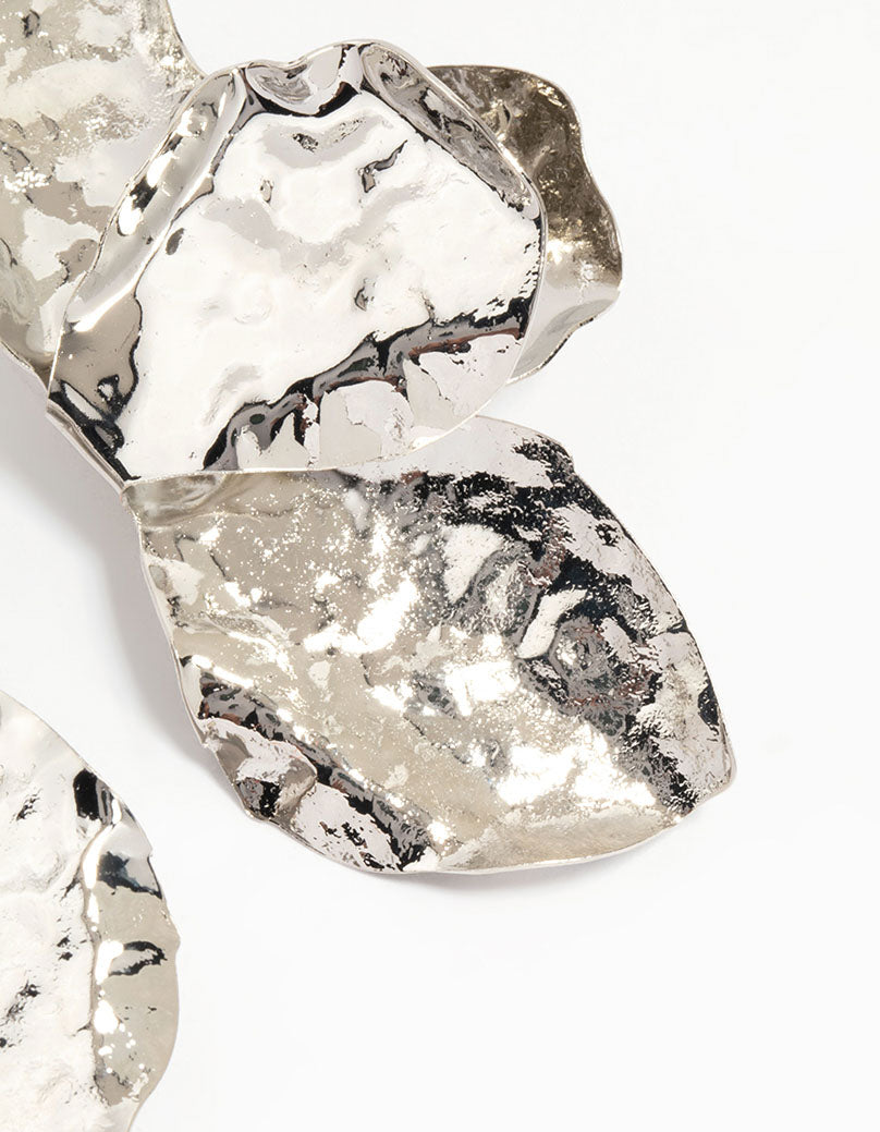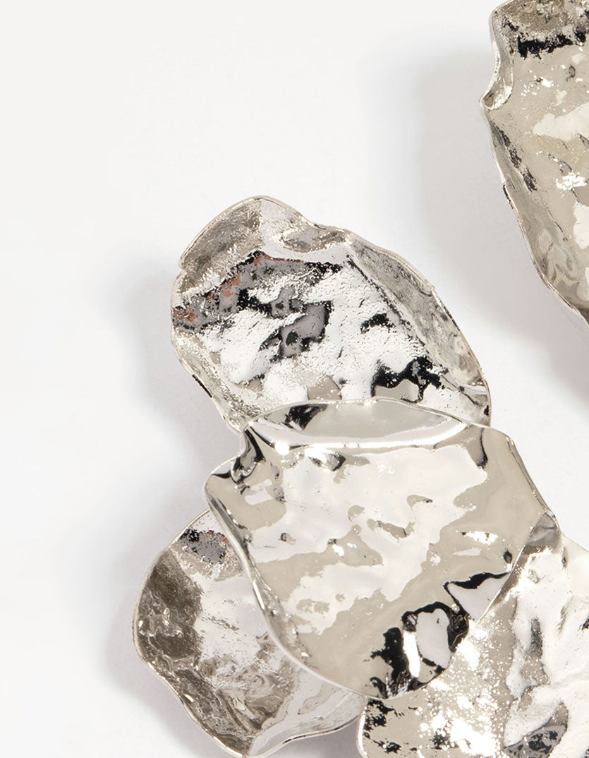Add a touch of elegance to your look with these Silver Hammered Statement Petal Stud Earrings. These stunning silver earrings feature a unique petal-inspired shape with a hammered texture for a modern yet organic feel.
