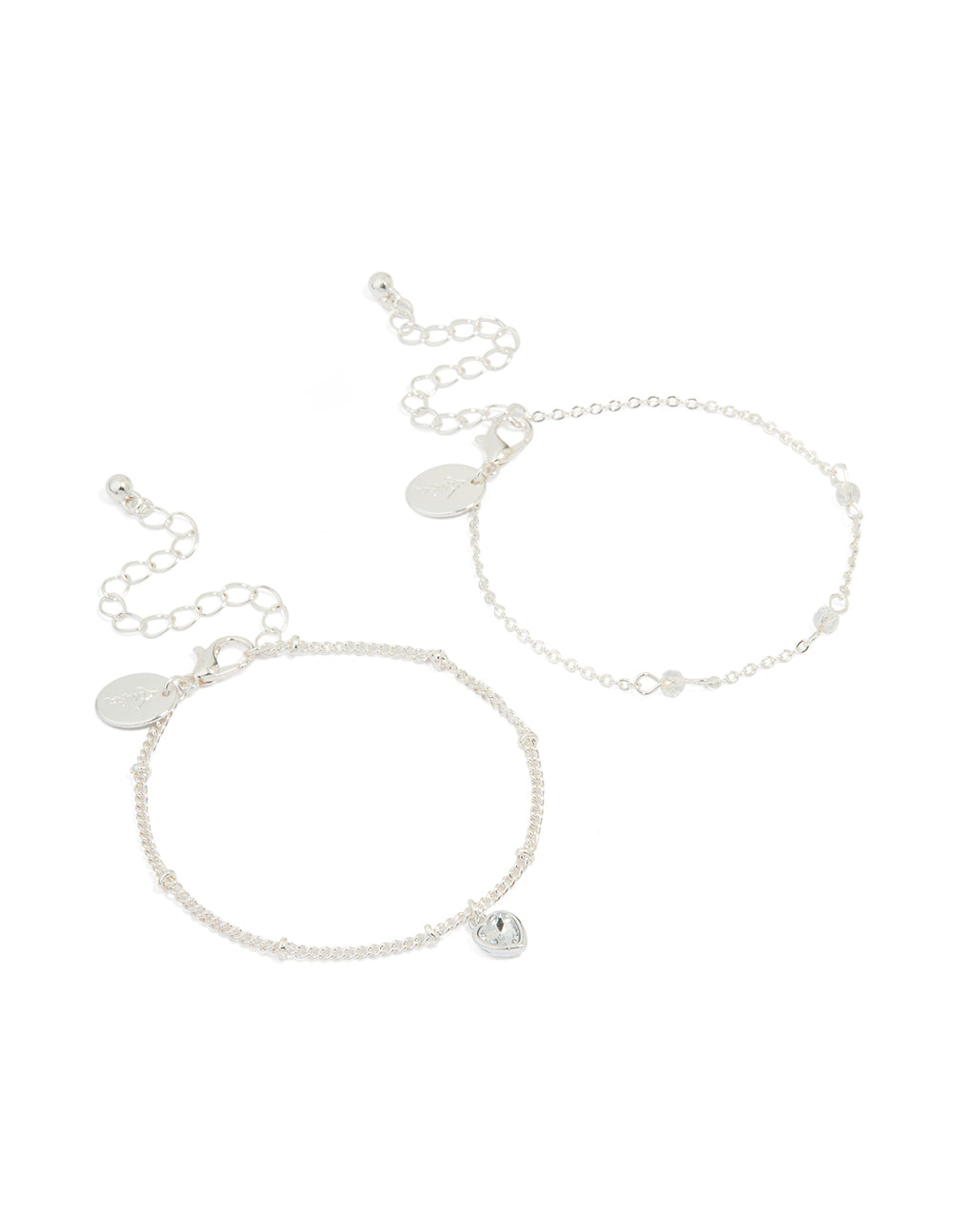 Silver Heart Charm & Stone Bracelets 2-Pack