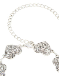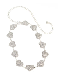 Add a touch of charm to your outfits with this Silver Heart Western Belt . Featuring a striking multiple hearts design and crafted in shimmering silver, this belt is perfect for cinching your waist with flair. Whether you're rocking a flowy dress, high-waisted jeans, or a chic skirt, this belt delivers effortless style. Ideal for casual day looks or dressing up for a night out, this belt is the perfect finishing touch to your ensemble. Its unique design makes it a standout piece, combining practicality with a fun edge.