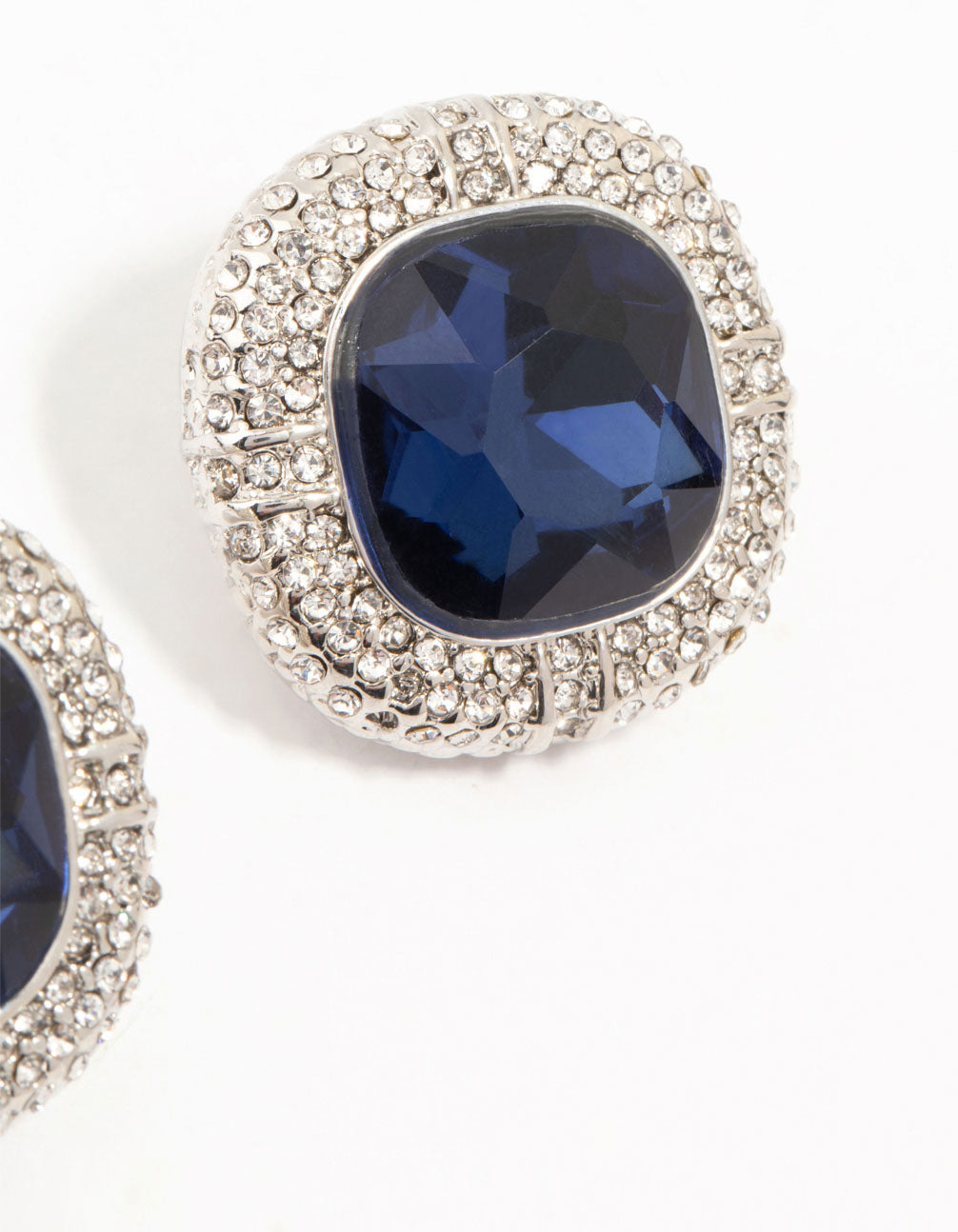 Dazzle with these large blue diamante stud earrings. Crafted with a gorgeous halo effect of diamantes and a big blue diamante center, they add a touch of eye-catching glamour to any look. These must-have studs will keep you sparkling bright.