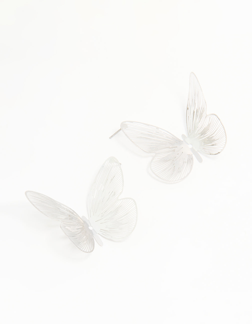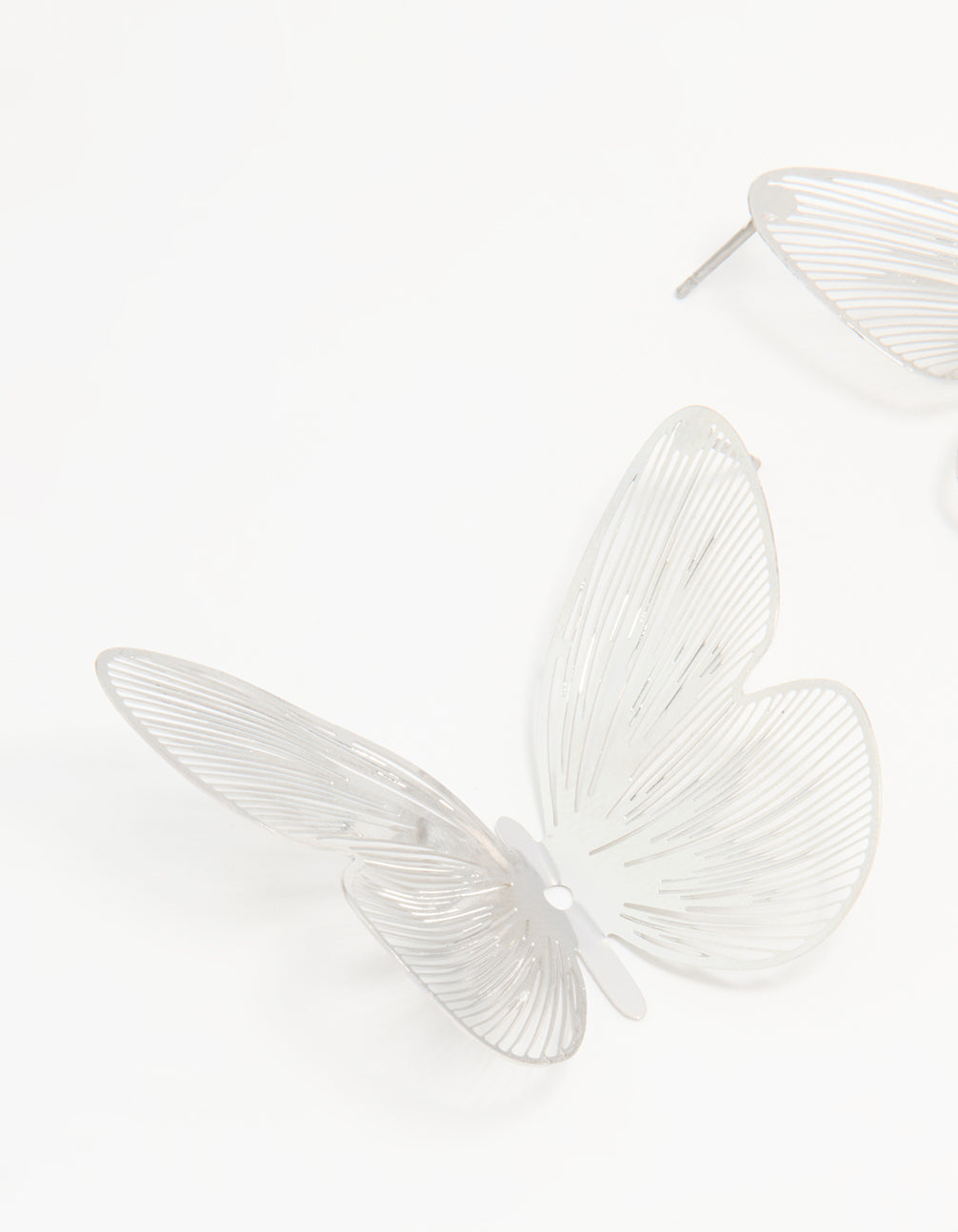 Add a flutter of charm to your look with these Silver Large Butterfly Stud Earrings. Crafted from silver toned metal, these butterfly-shaped studs are perfect for adding a whimsical, nature-inspired touch to your outfit. With their bold yet elegant design, they're ideal for everyday wear or as a standout accessory for special occasions. Whether you're dressing up a casual ensemble or adding a playful detail to evening attire, these butterfly earrings pair beautifully with flowy tops, tailored blazers, or chic dresses. Perfect for fans of silver jewellery and timeless stud earrings, they're a versatile piece that will effortlessly elevate your style.