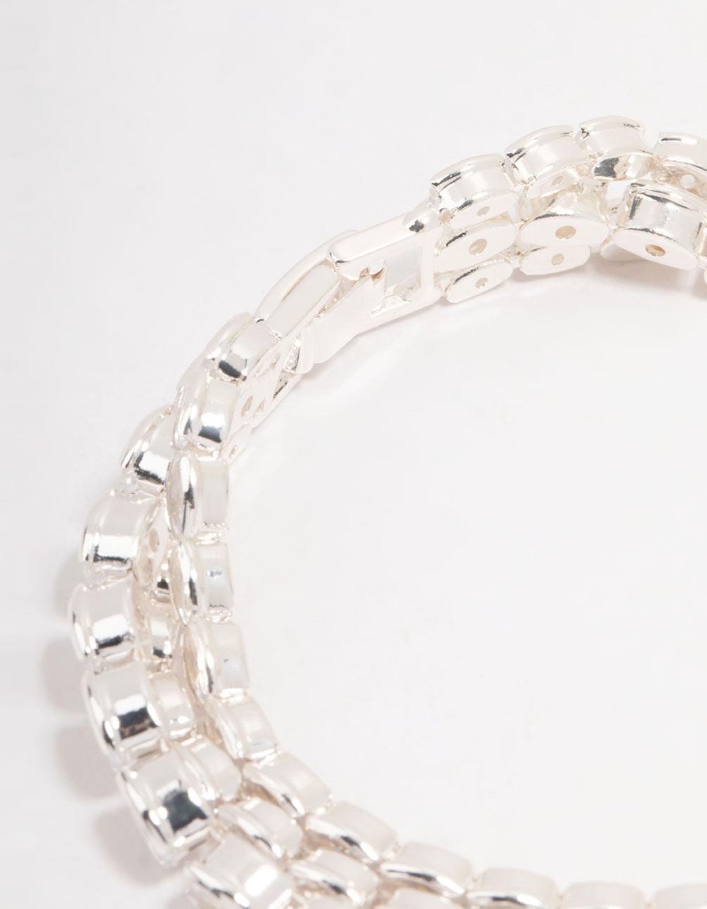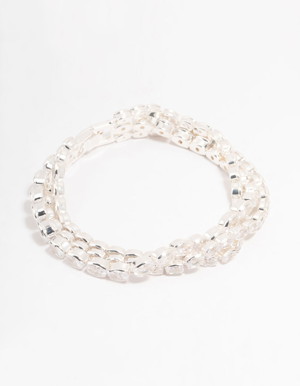 Upgrade your style with the Silver Layered Oval Cubic Zirconia Bracelet. The sparkling cubic zirconia stones and sleek silver-tone base add elegance, making it a versatile bracelet for any occasion.