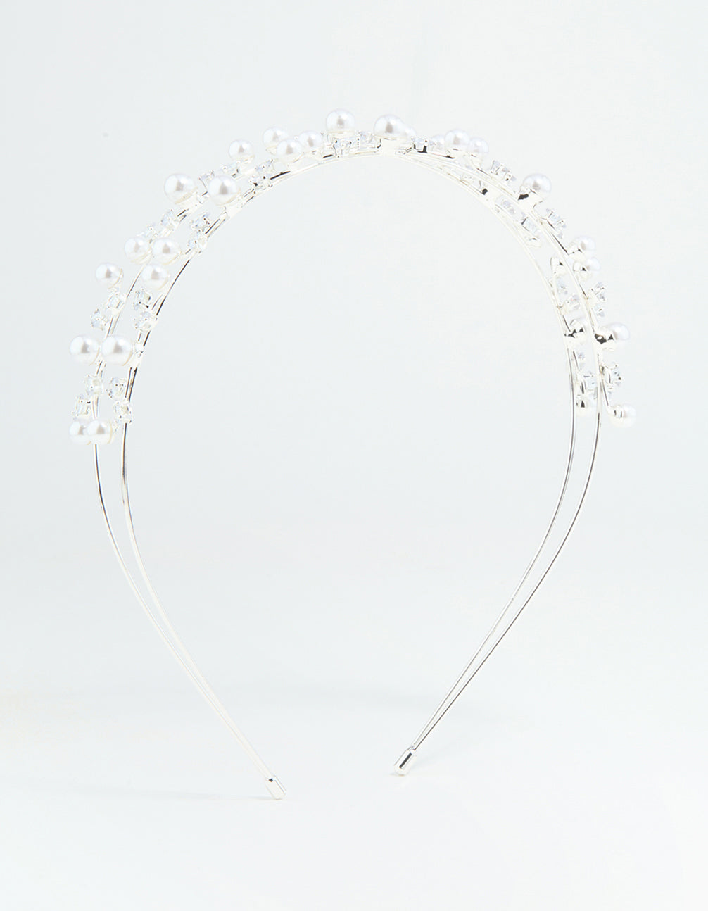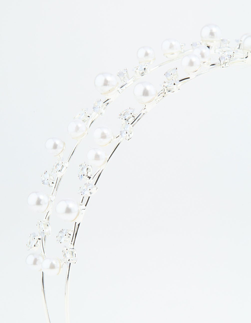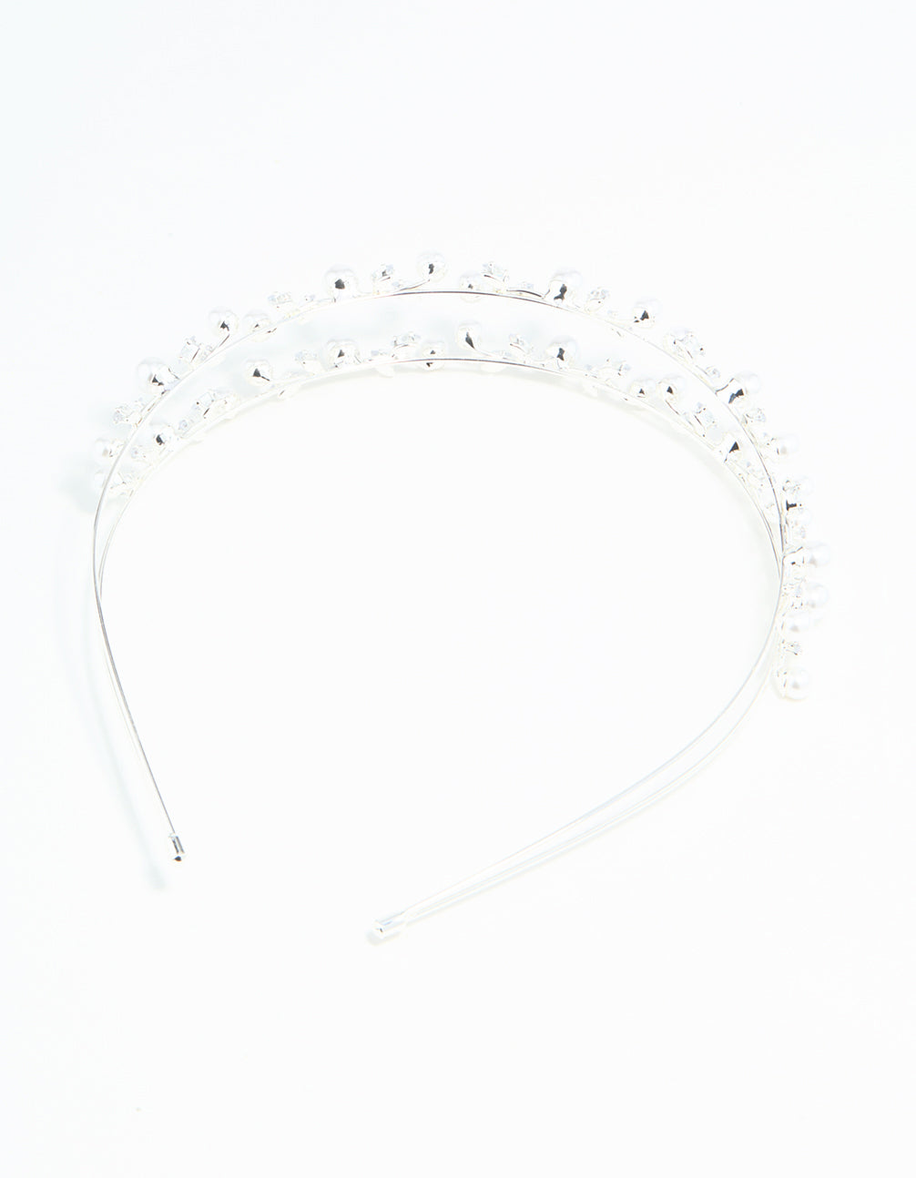 Silver Leaf Diamante Pearl Wire Layered Headband