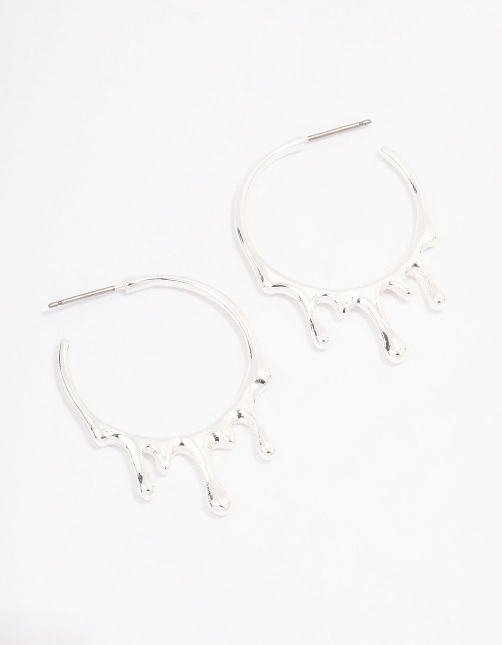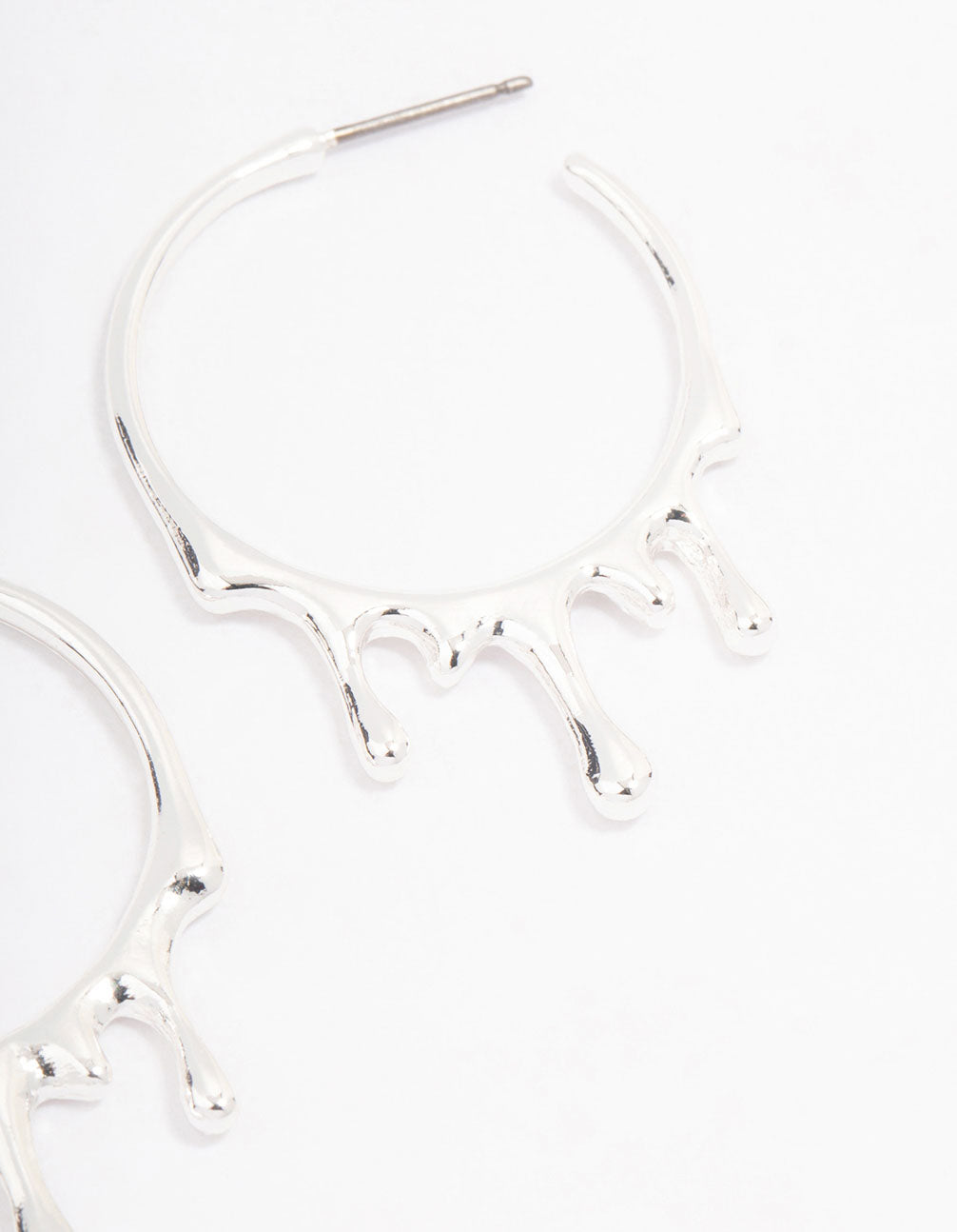 For a modern finish to your outfit, style these unique hoop earrings. This set of hoops feature a stunning, silver setting and melting silhouette. Perfect for styling at your next festival or day party!