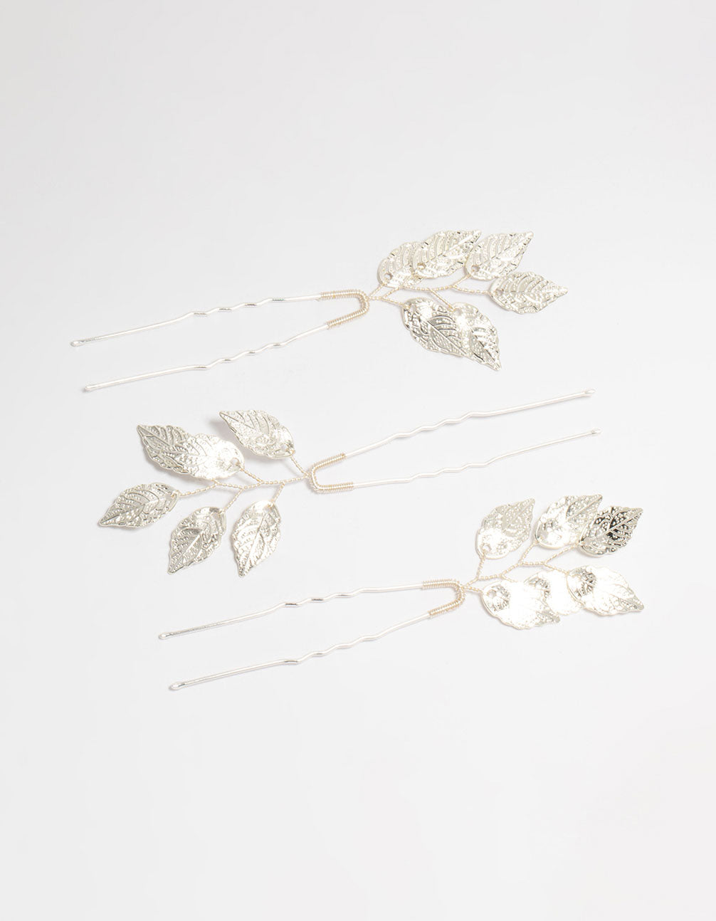 Silver Metal Leaf Hair Pins 3-Pack
